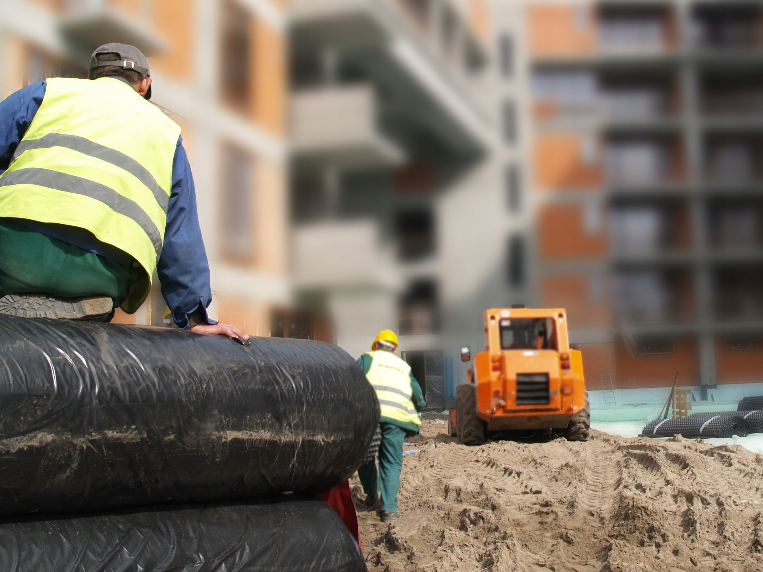 Геотекстиль вырезаны из больших рулонов.