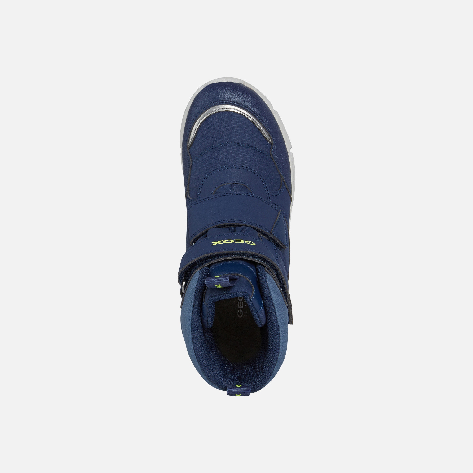 Молодежный водонепроницаемый, гибкий и мягкий ботин Основываясь на инновационной внешней подошве с высоким уровнем гибкости, амортизации и стабильности, Flexyper Abx - это удобная водонепроницаемая ботинка на лодыжках для зимы. Эта версия Navy Nylon, разработанная для активности на открытом воздухе и ежедневных приключений на открытом воздухе, имеет неоново-желтые детали материала, имитирующего кожу.