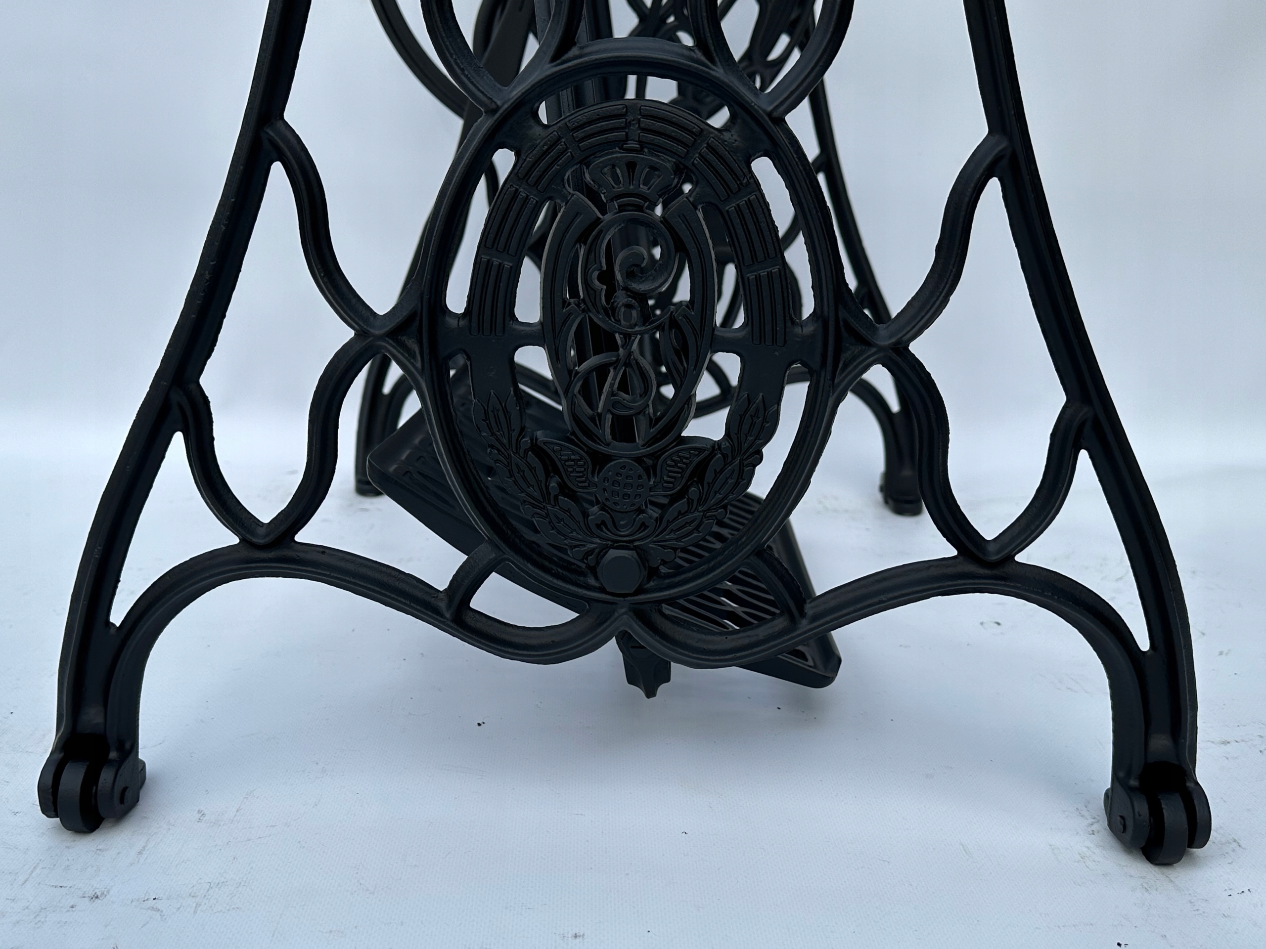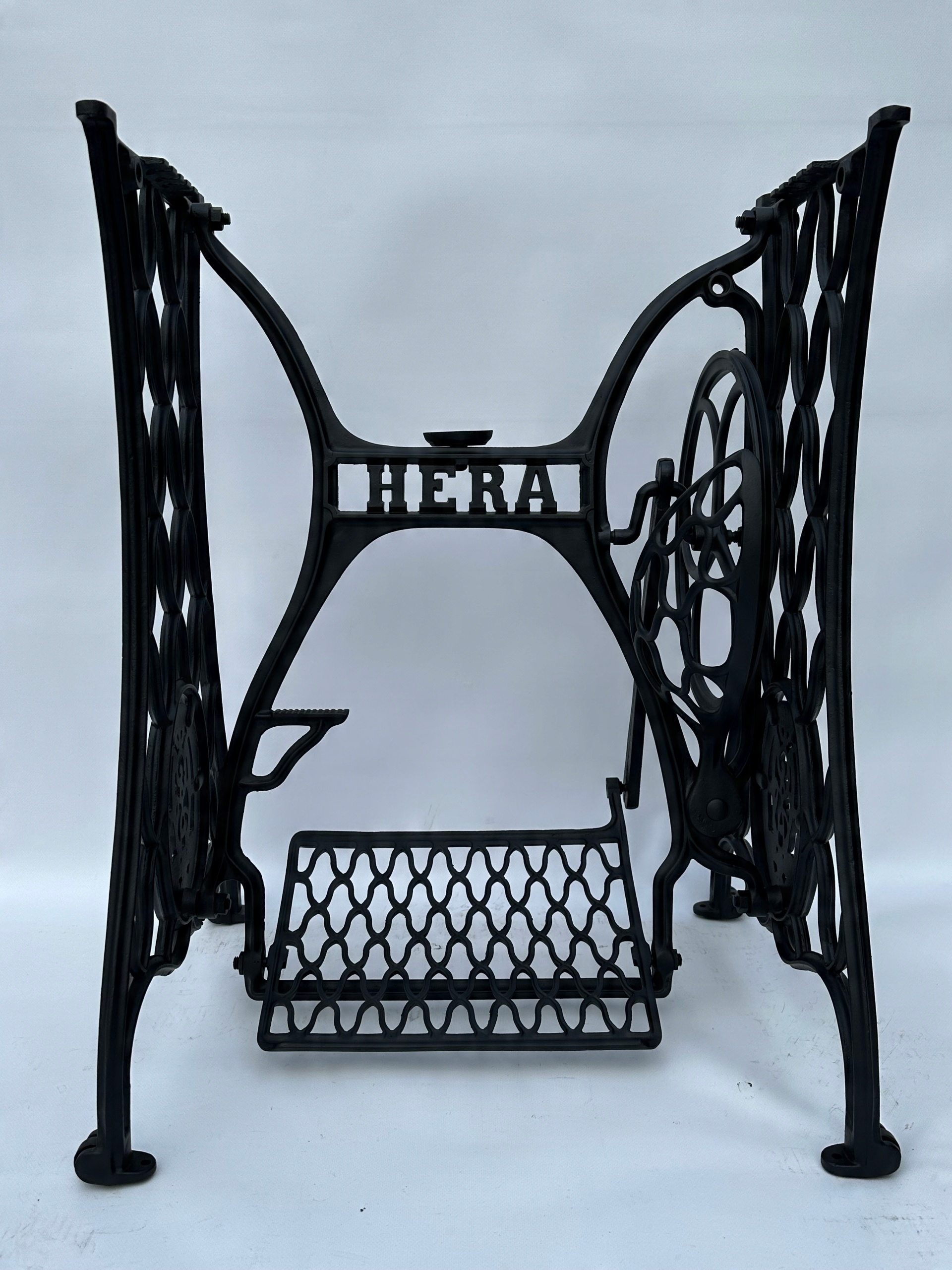 Предмет продажи — старая чугунная основа для швейной машины HERA. Очень красивый узор, встречается реже. Все 4 колеса внизу.