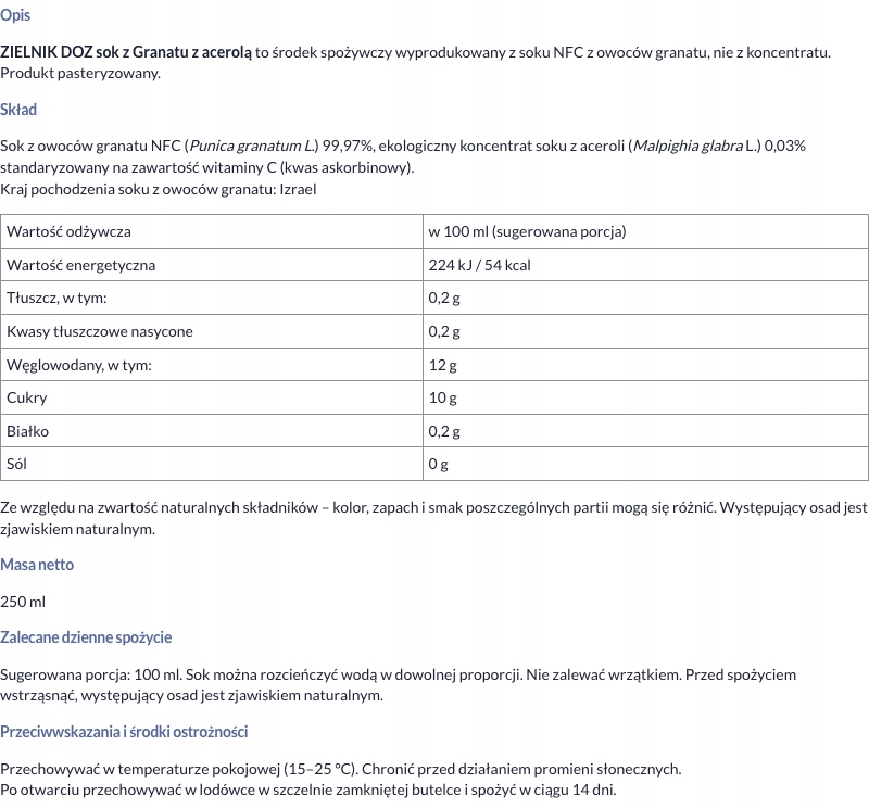 Просматривая «Граната из гербарии, сок, 250 мл», вы можете быть уверены, что данный товар из каталога «[rubrica_name]» будет доставлен из Польши и проверен на целостность. В цене товара, указанной на сайте, учтена доставка из Польши. Внимание!!! Товары для Евросоюза, согласно законодательству стран Евросоюза, могут отличаться упаковкой или наполнением.