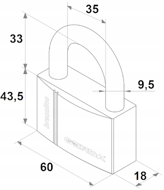НАВЕСНОЙ ЗАМОК GERDA ЛАТУННЫЙ 60 ММ - ЗАМОК С 3 КЛЮЧАМИ
