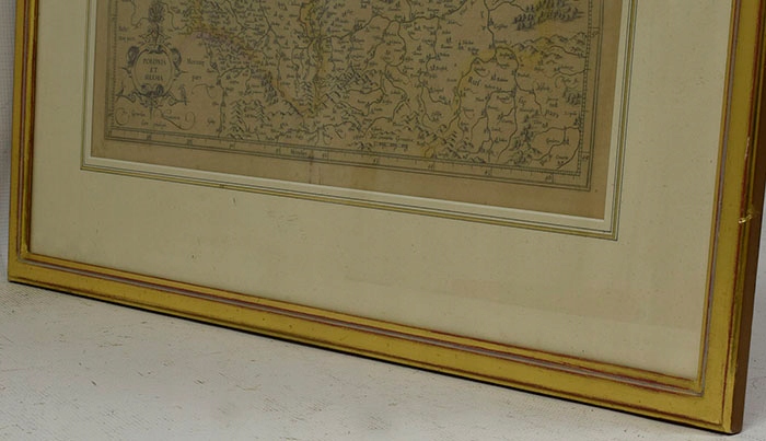 Старое стекло в рамке с картой, выполненное в виде медной гравюры, с изображением карты Польши и Силезии. Мы можем найти польские города, такие как: Краков (Краковия). Кельце, Конин (Конин), Радзимин, Гарволин, Мелец, Опочно, Бохня.