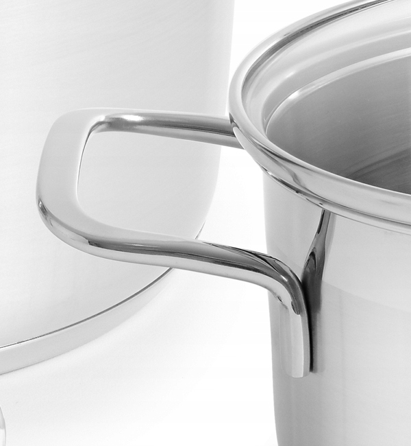 • Большие стальные и удобные ручки облегчают использование кастрюль.