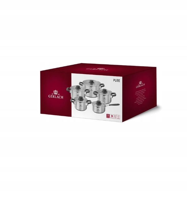 GERLACH PURE Набор кастрюль с крышками 10 шт / нержавеющая сталь / индукция
