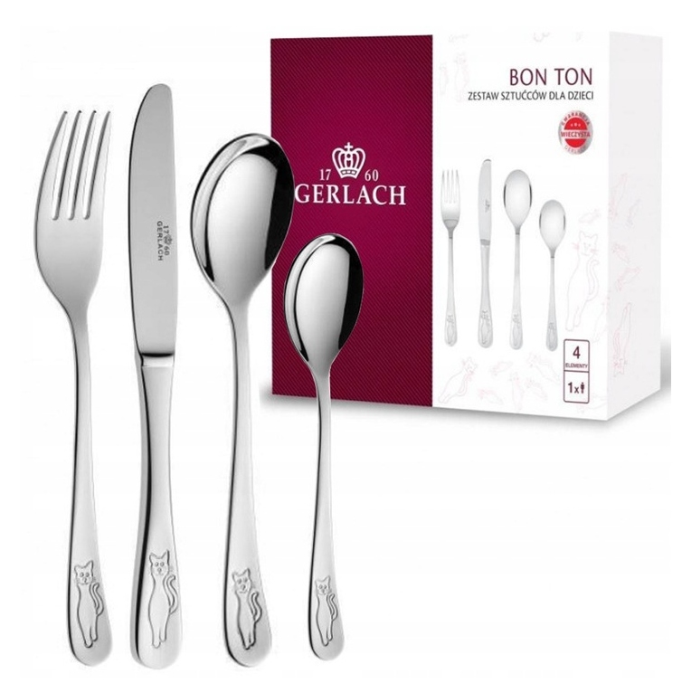 GERLACH СТОЛОВІ ПРИБОРИ ДИТЯЧІ 4 ЕЛ КОШЕНЯТА БОН ТОН НЕРЖАВІЮЧА СТАЛЬ