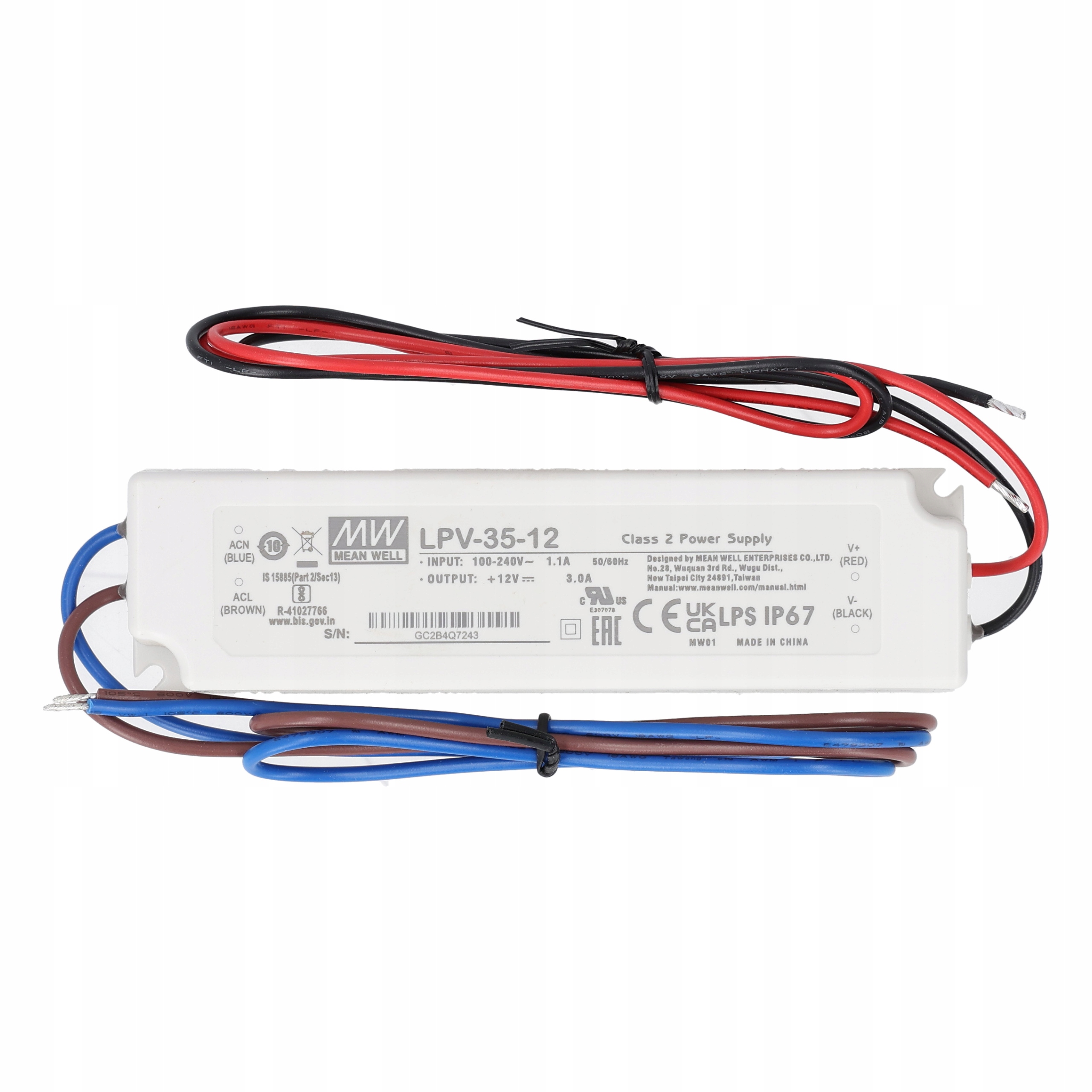 Герметическая герметическая лента Питание питания 12V 3A 35W IP67 h1> Герметическое и водонепроницаемое источник питания | Средний скважина LPV-35-12 h2>