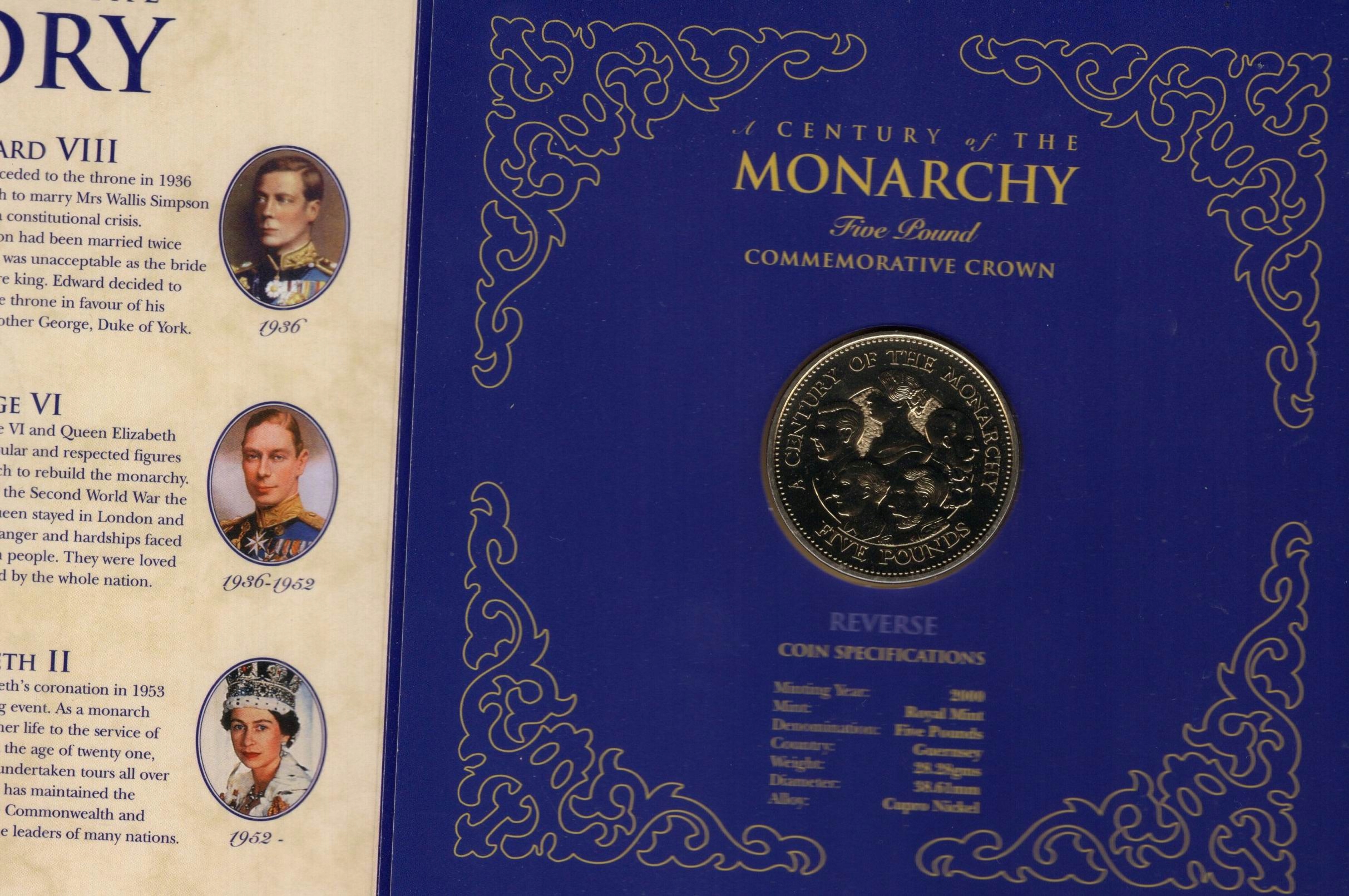 Guernsey 2000 5 фунтов британских монархов + папка