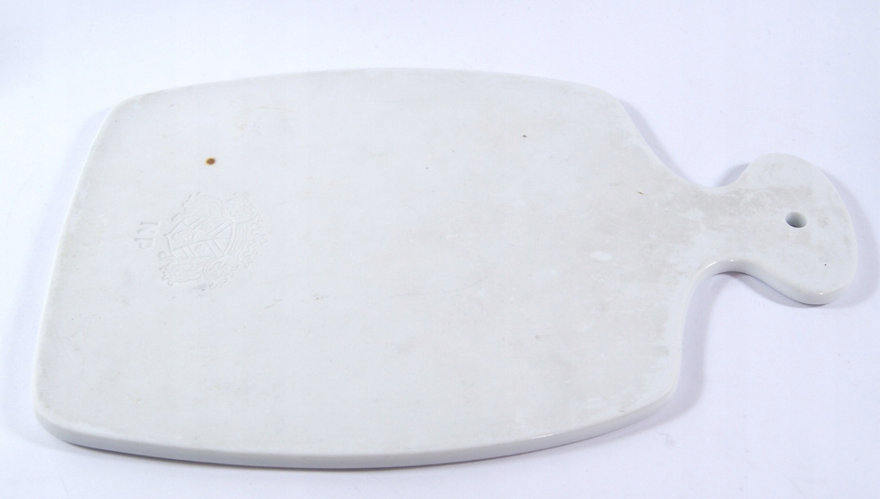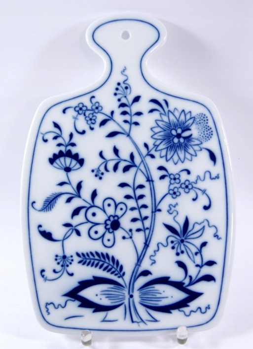 Красивая, старая фарфоровая доска- основание для горячего сосуда, изготовлена из белого фарфора, украшенного кобальтовым луком. Нажатый эталонный номер.