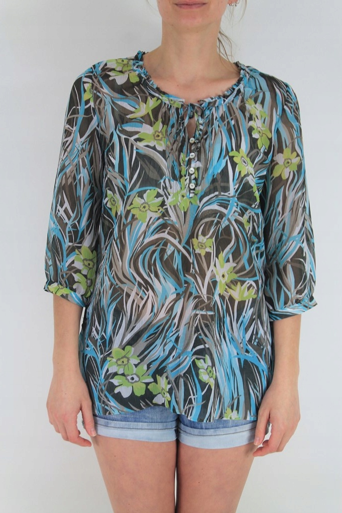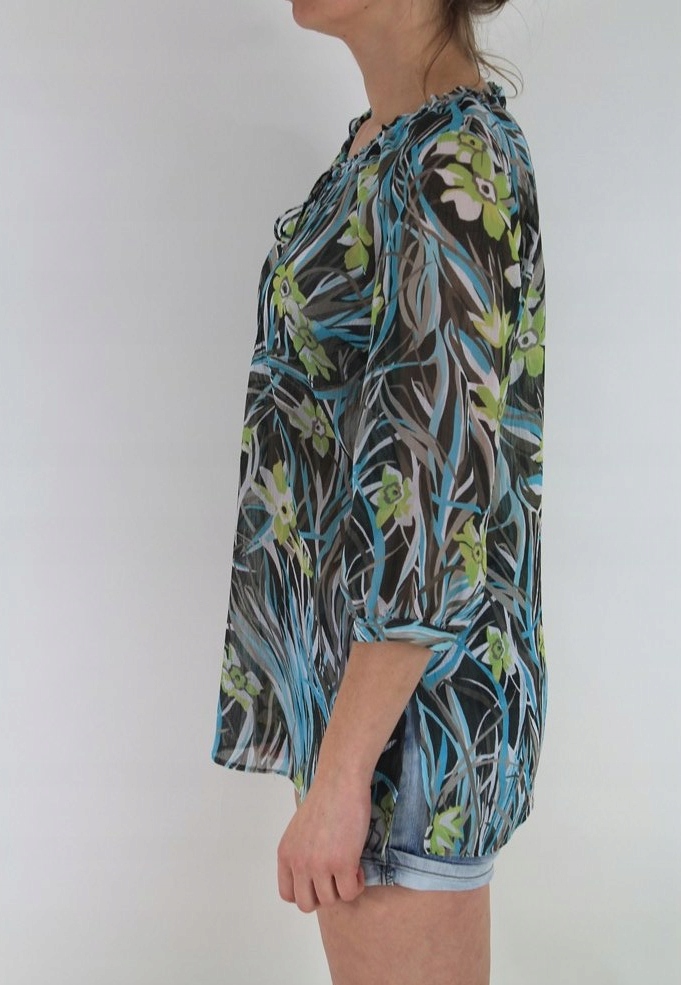 пляжное платье, парео, туника / легкий, воздушный материал, слегка ребристая / рукава 3/4 / круглый вырез с небольшим V-образным вырезом + ПУГОВИНЫ / завязывается на шнурке по вырезу/свободный, трапециевидный крой/красивый цветочный узор,