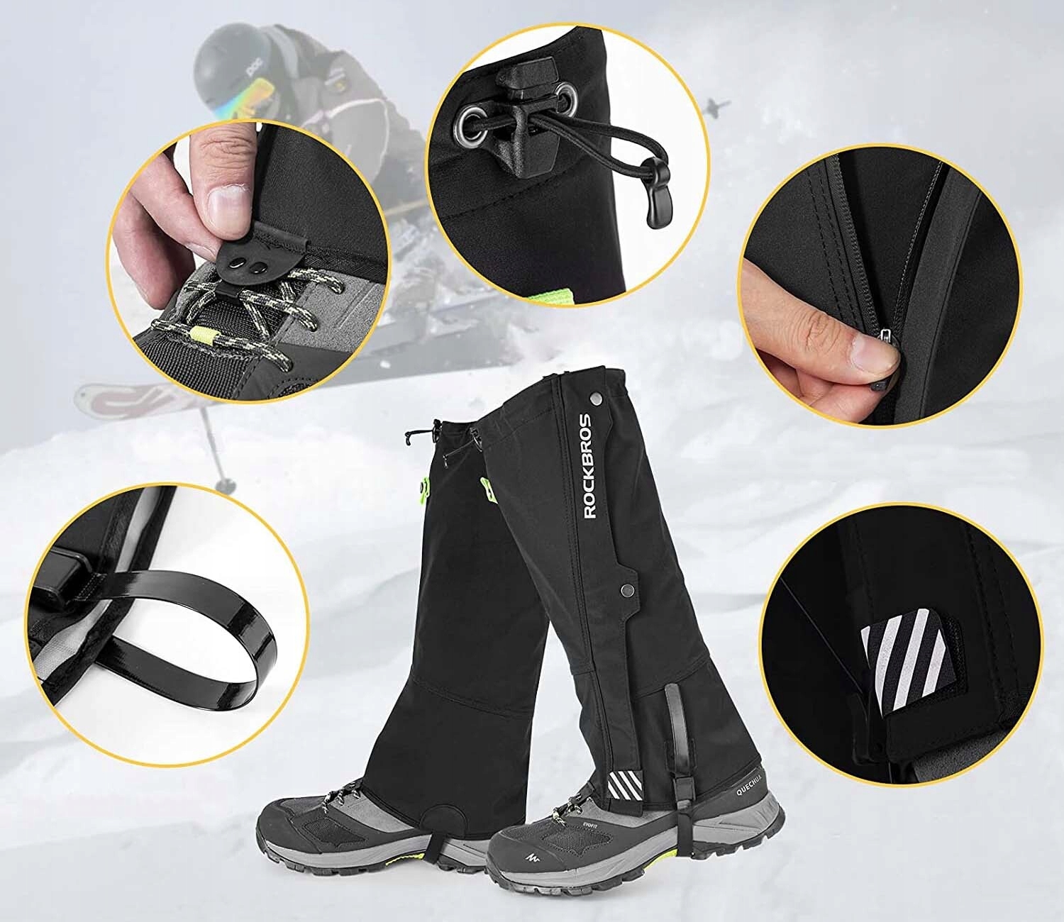 Защита ног состоит из 2 слоев. Внешний материал — водонепроницаемый нейлон 600D. Внутренний материал выполнен из воздухопроницаемой сетки, поэтому ваши ноги не промокнут во время бега, пеших прогулок, катания на лыжах или ходьбы по снегу.