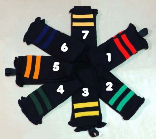 Getry harcerskie czarne z kolorowymi paskami