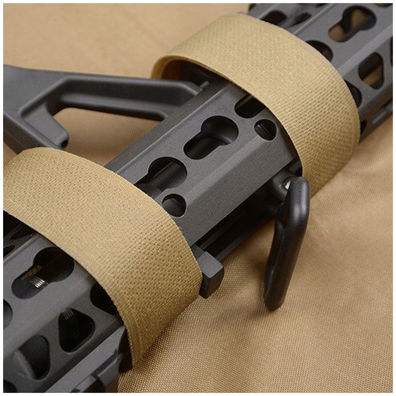 Модель также оснащена компрессионными лямками, на которые переносится вес оружия. Лямки застегиваются на пряжки-фастекс.