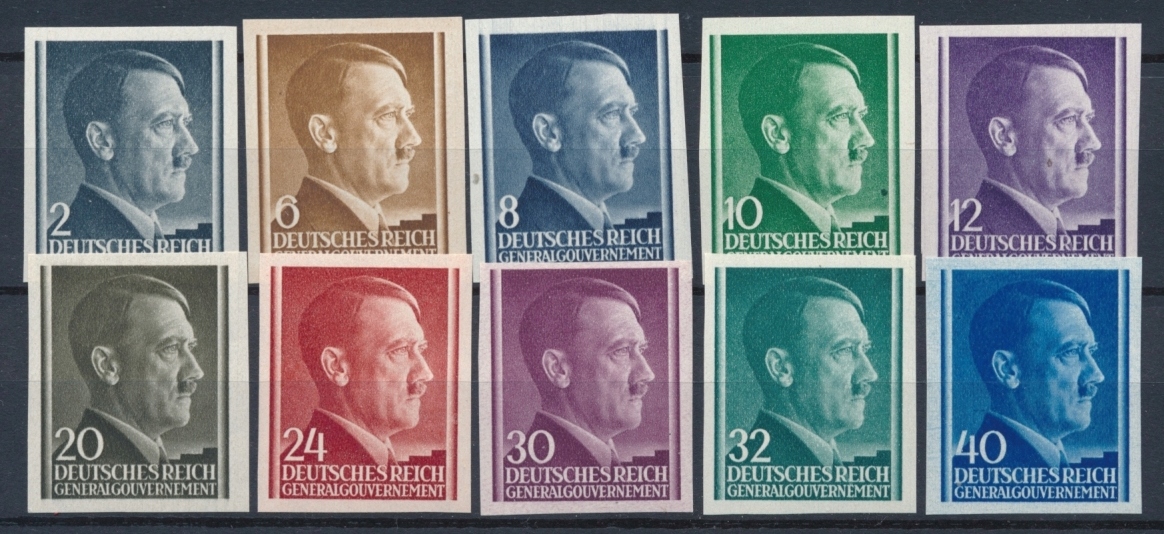 Чистые марки, без клея и каких-либо его следов, тираж без зубца, состоящий из десяти основных номиналов, без штампа. 76 и 48