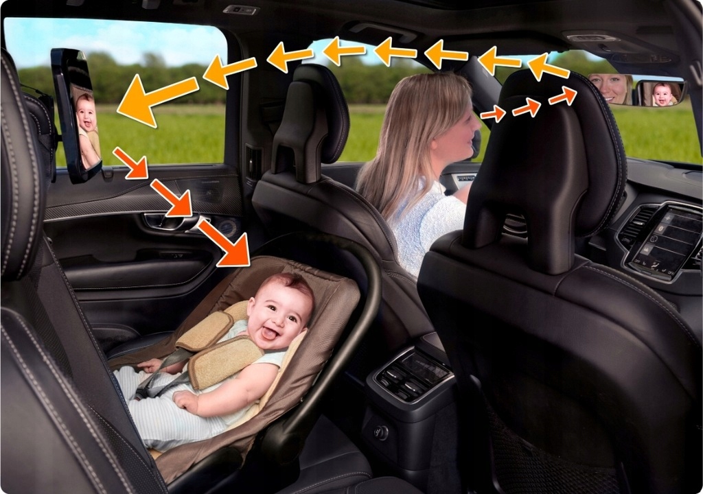 - Допускает зрительный контакт с ребенка, одновременно безопасное управление транспортным средством.