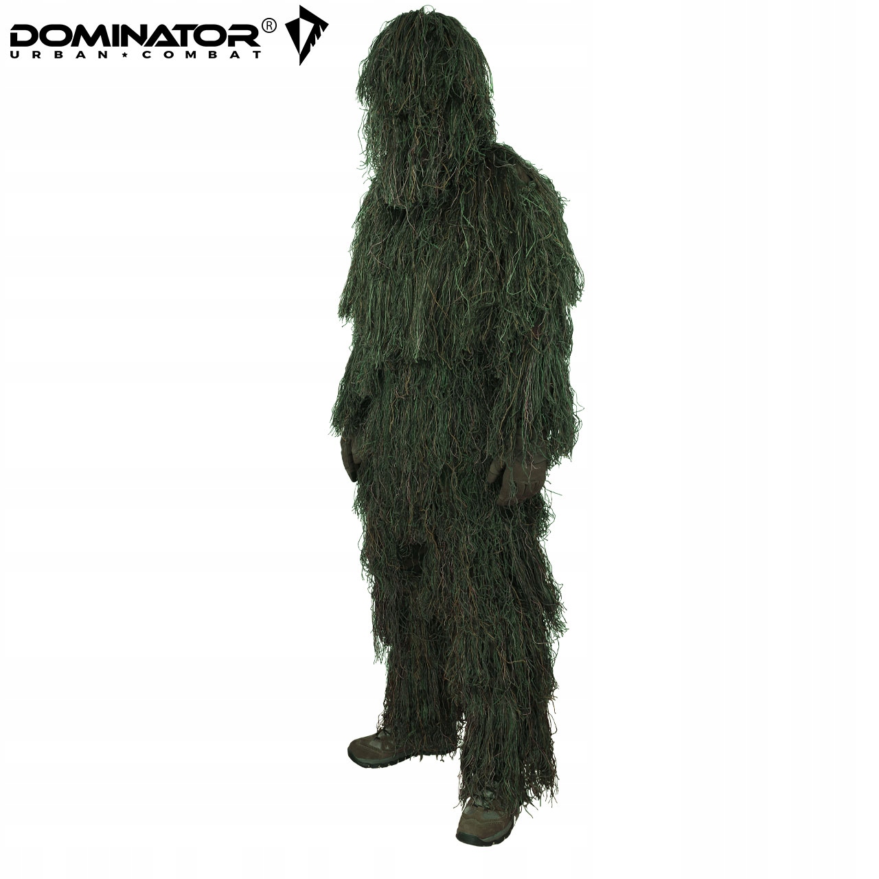 Камуфляжный комплект Ghillie Suit производства компании DOMINATOR®, состоящий из сетчатых штанов, толстовки, головного убора и камуфляжа для оружия, на котором в случайном порядке размещены отрезки пряжи разной длины. и оттенки. Одежда создает потрясающий эффект, найти спрятавшегося человека на земле или в лесных пейзажах невозможно даже с небольшого расстояния.