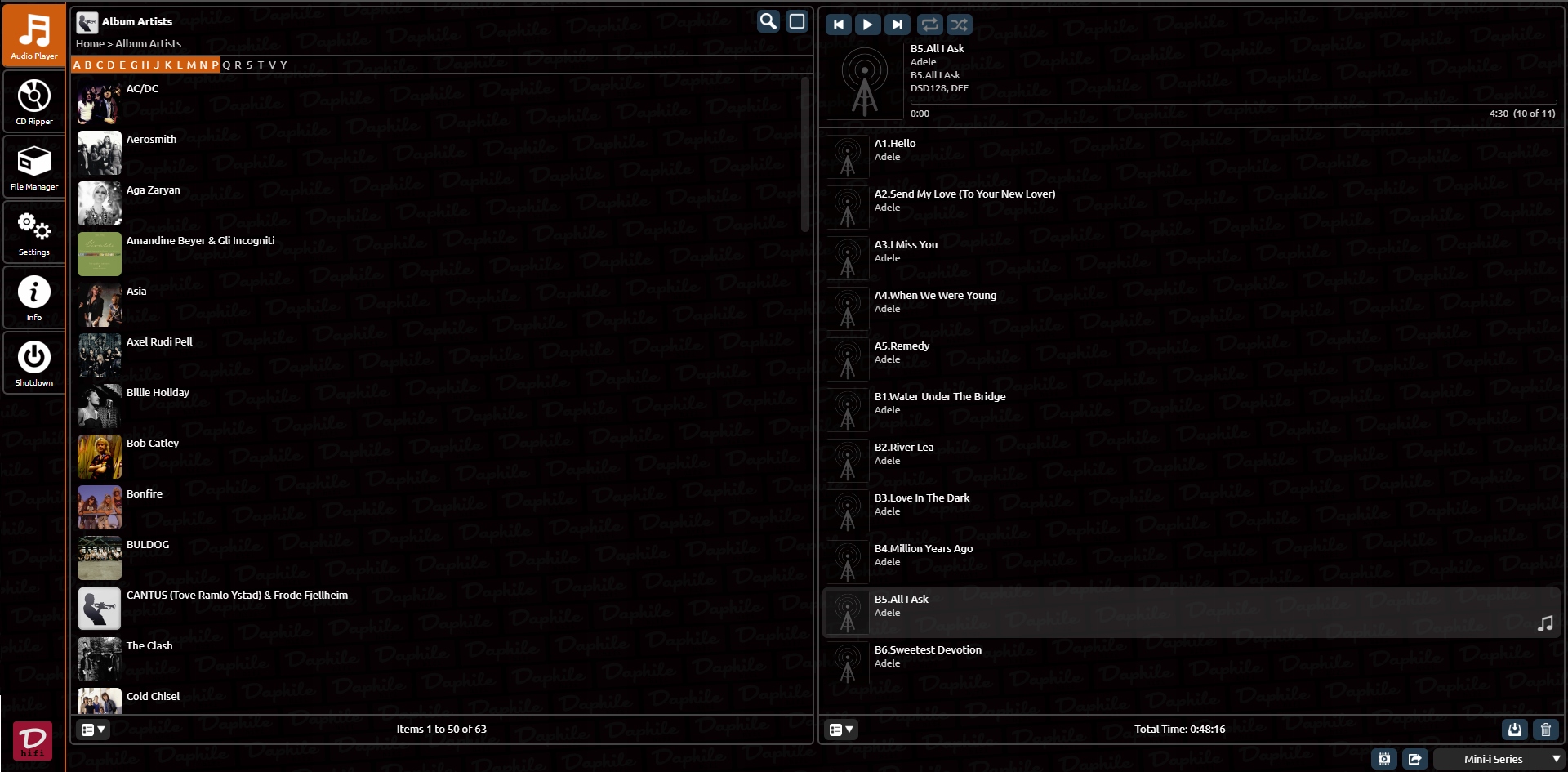 Наилучших результатов можно добиться, подключив к USB-выходу плеера Daphile USB преобразователь ЦАП в аналоговый.