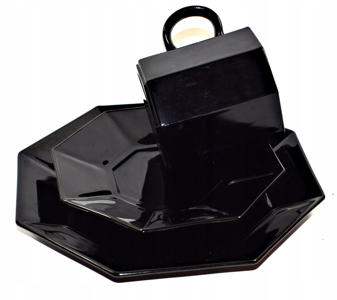 Красивый набор из толстого черного гиалитового стекла. Довольно большая чашка - для кофе или чая в стиле ретро. Отмечена редкость - французское стекло. Наверняка для скандинавского интерьера :).