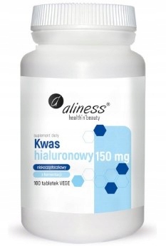 Гиалуроновая кислота — важный структурный элемент кожи и хрящевых тканей, отвечающий за их увлажнение, эластичность и прочность. К сожалению, количество гиалуроновой кислоты в тканях уменьшается с возрастом, и после 30 лет ее прием может оказаться полезным решением. На помощь приходит продукт Aliness Hyaluronic Acid 150mg, который благодаря использованию низкомолекулярной формулы эффективно восполняет потери гиалуроновой кислоты как в коже, так и в хрящевой ткани. В продукте используется гиалуроновая кислота с размером молекул от 2 до 300 кДа.