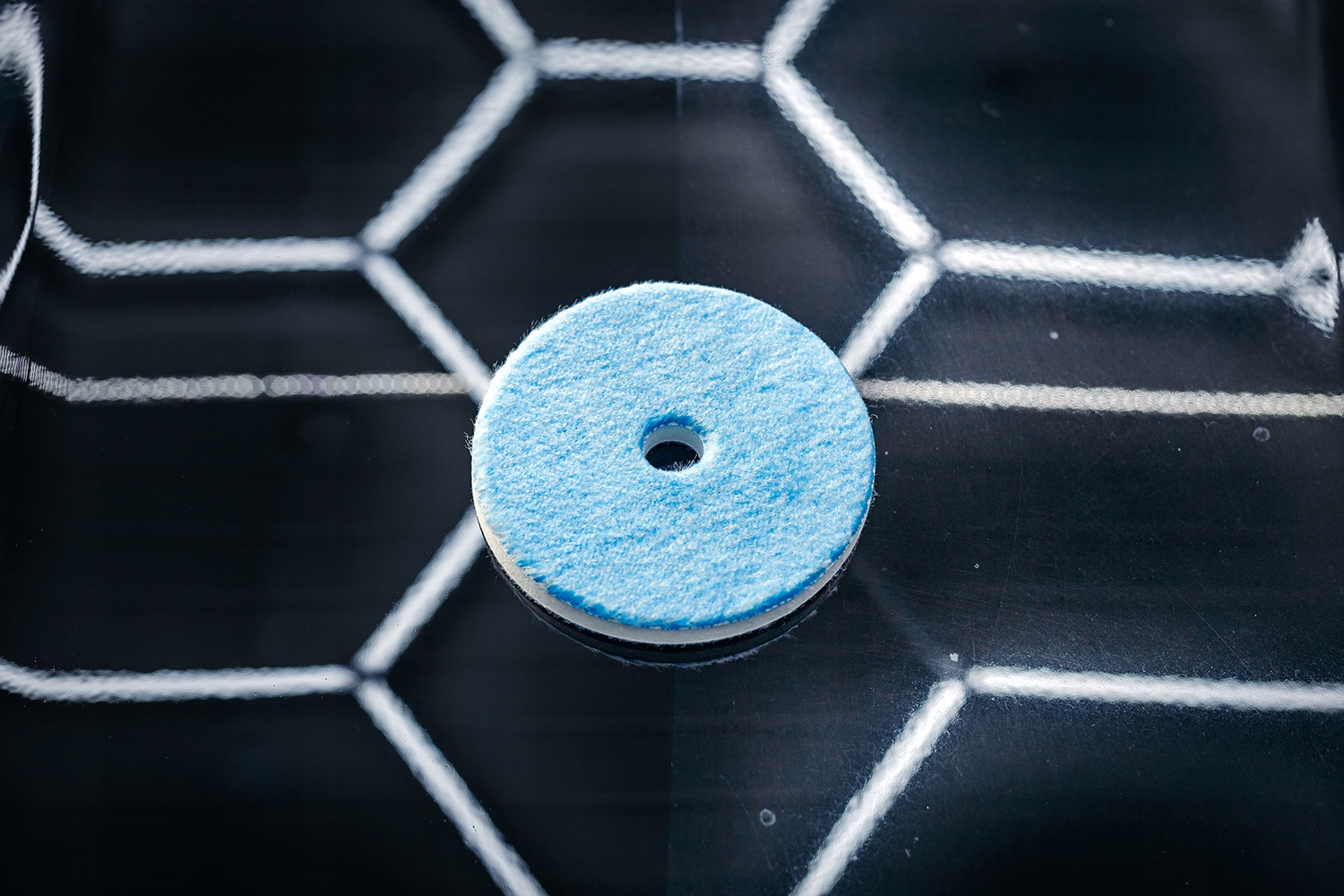Сильнорежущая гибридная полировальная подушечка из двух типов волокон: белого (режущего) и синего (финишного).