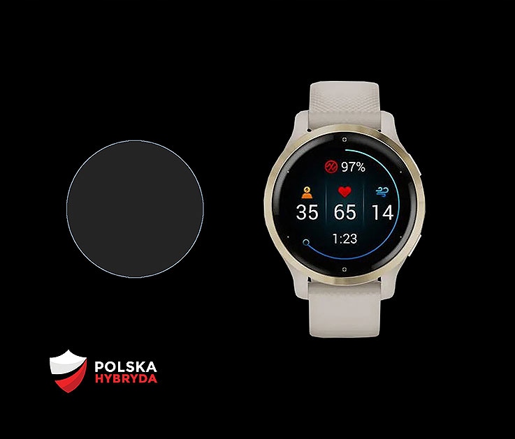 Польша Гибрид отличается самой высокой устойчивостью к царапинам, потому что использовались инновационные керамические покрытия, давая реальную твердость площади 9H. Гибкое защитное стекло имеет толщину 0,18 мм. Польский гибрид - это безопасное, гибкое стекло нового поколения , которое, благодаря использованию керамических покрытий, дает прикосновение впечатление отсутствия дополнительного защитного слоя на дисплее garmin venu 2s.
