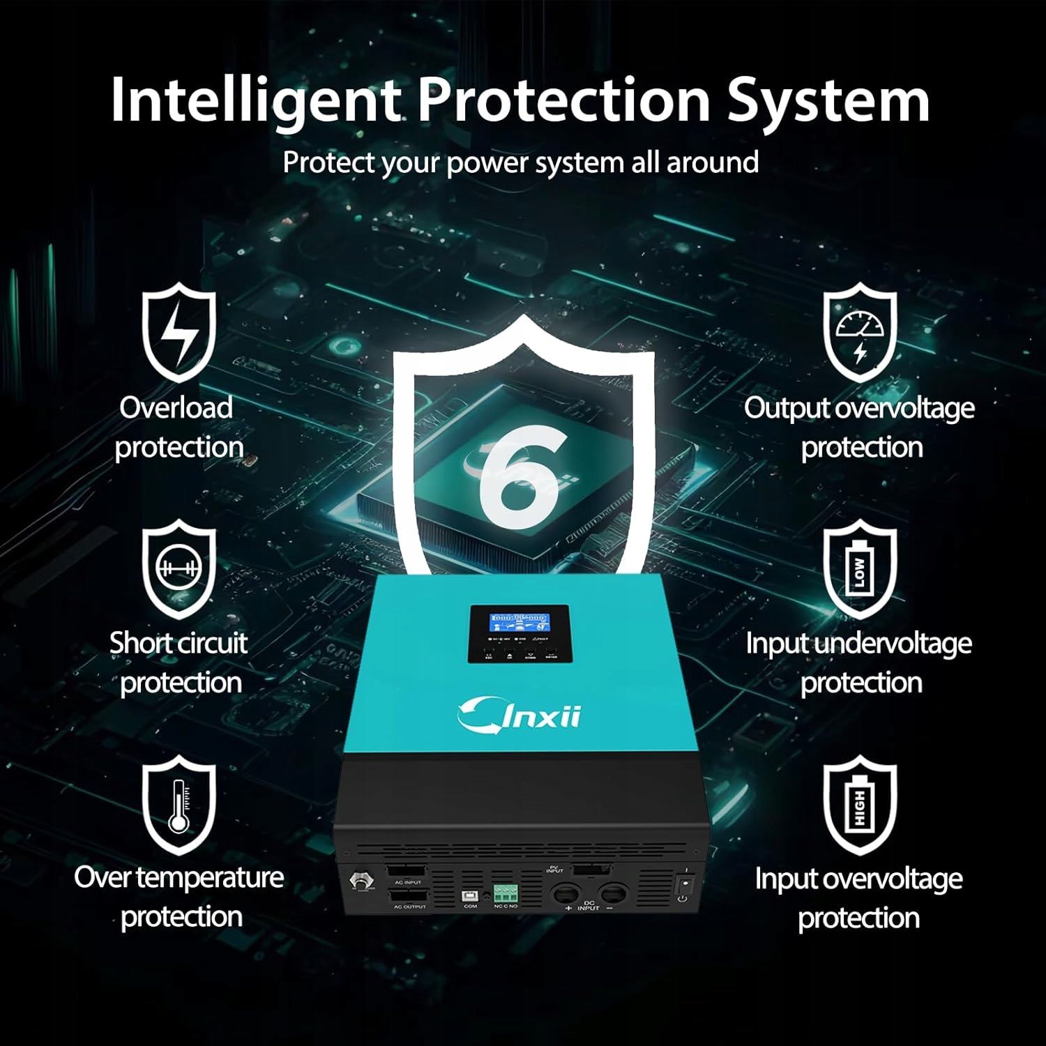 Приоритет сети (USV) может использовать инвертор в качестве непрерывного источника питания. Это означает, что в случае общедоступной сети или генератора гибридный инвертор Inxia 3000 Вт автоматически переключается в течение 10 мс, благодаря которому устройства всегда безопасно подключены.