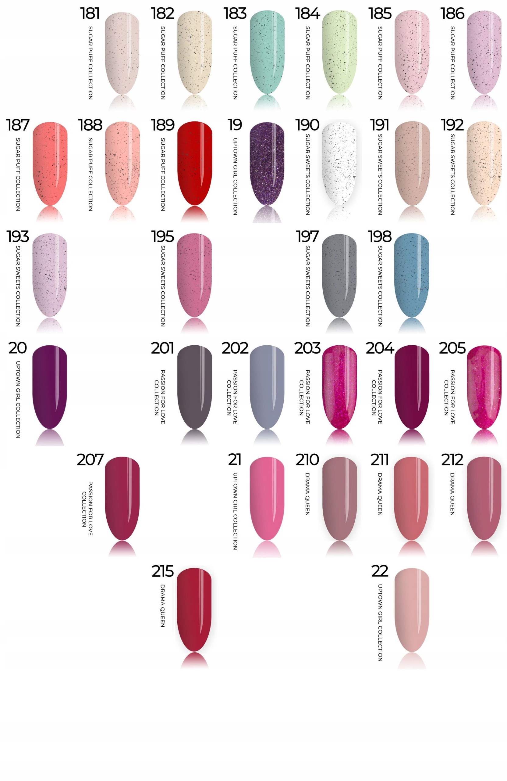 При выборе цвета в сообщении продавцу указывайте точные номера цветов (без названий коллекций), которые можно найти в левом верхнем углу каждого цвета лака. Это значительно ускорит процесс выполнения заказа.