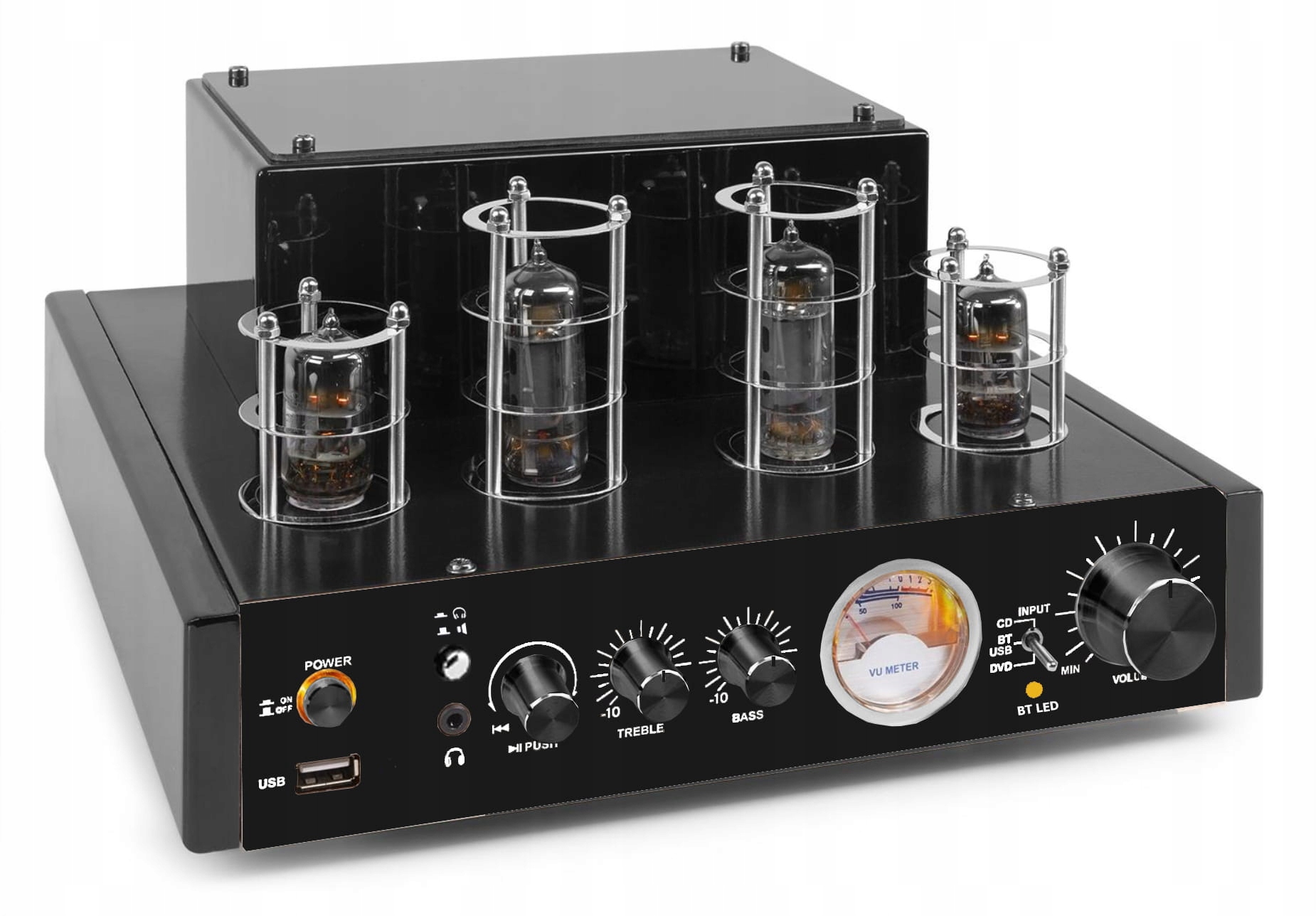 Созданный на основе двух ламп 6N1 и 6P1, он позволит нам наслаждаться превосходным качеством музыки. Благодаря индикатору VU усилитель позаботится не только о наших акустических, но и визуальных впечатлениях, придав нашей аудиосистеме уникальный дизайн.