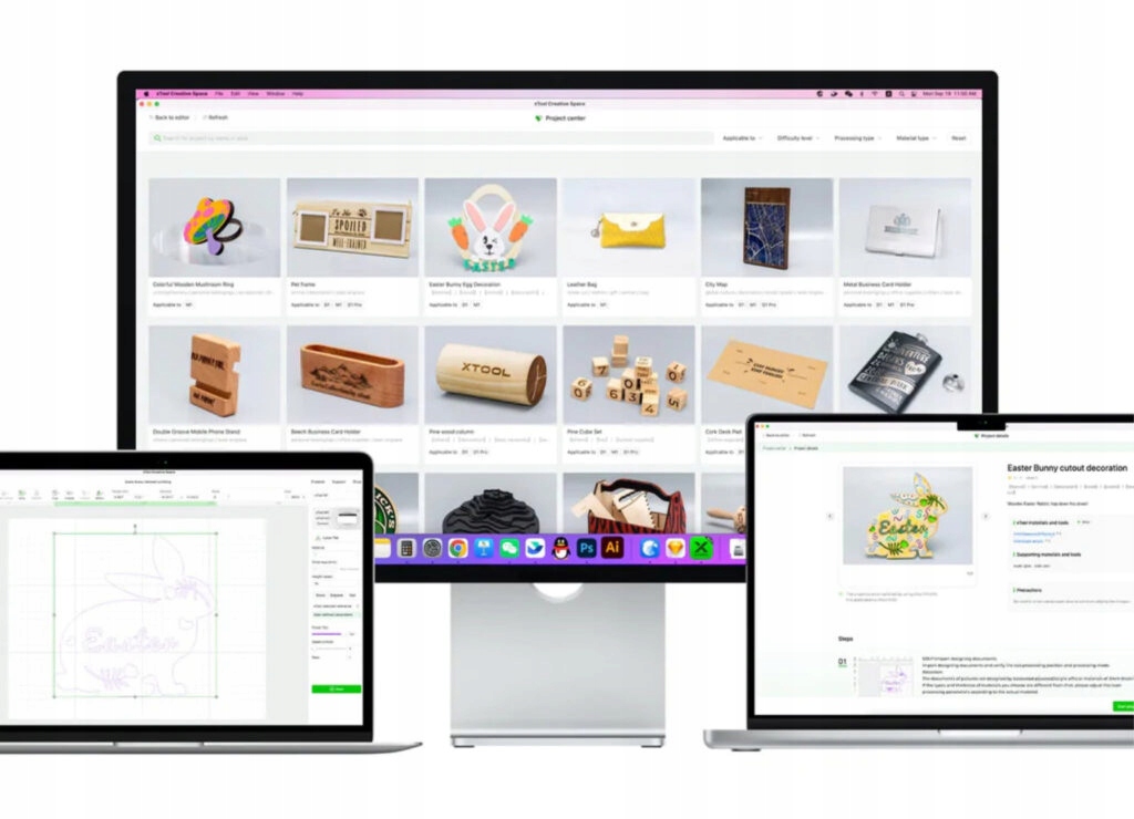 Программное обеспечение, входящее в комплект гибридного плоттера xTool M1, отличается исключительно интуитивно понятным управлением и доступностью. Программа xTool Creative Space работает с Windows, macOS, Android и iOS. Это обеспечивает гибкость использования и возможность управлять машиной как со стационарных устройств, так и со смартфонов. Кроме того, программа предлагает инструменты, полезные для создания собственных выкроек, и 500 готовых дизайнов с возможностью редактирования для использования в библиотеке. В настоящее время программное обеспечение может работать на английском языке, а наша команда работает над переводом программного обеспечения на польский язык, который будет доступен в ближайшие месяцы.