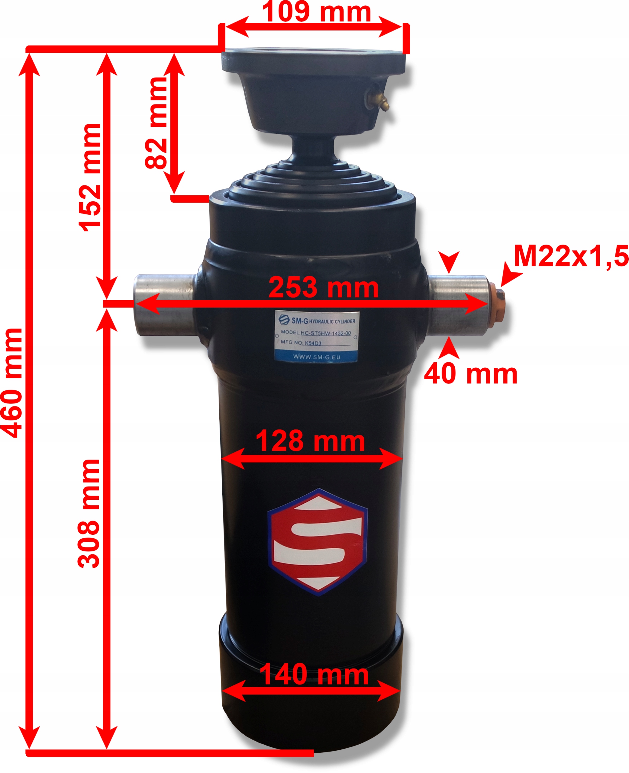 Гидравлический цилиндр с шагом 1432 мм с гнездо и колыбелью h2> Производитель: SM-G (Schaw-Met Group) H2> Символ: ST-5 1432 (HC-ST5HW-1432-00 H2>