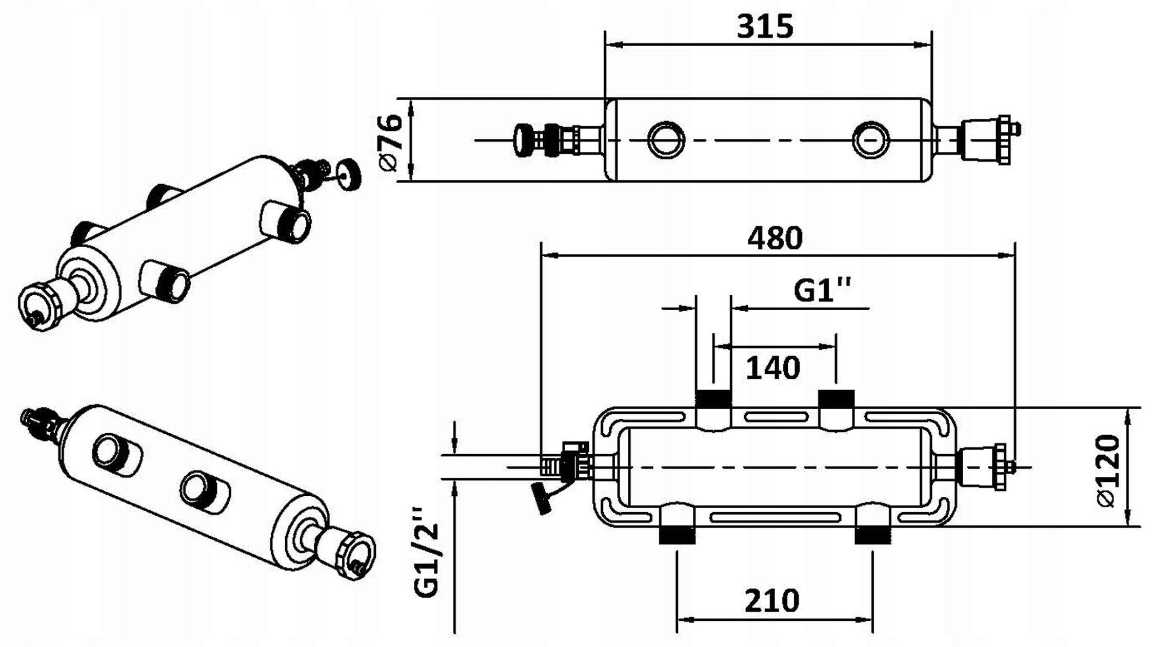 Гидравлическая муфта предназначена для разъединения контура источника тепла от контура установки. Два контура гидравлически сбалансированы в муфте.
