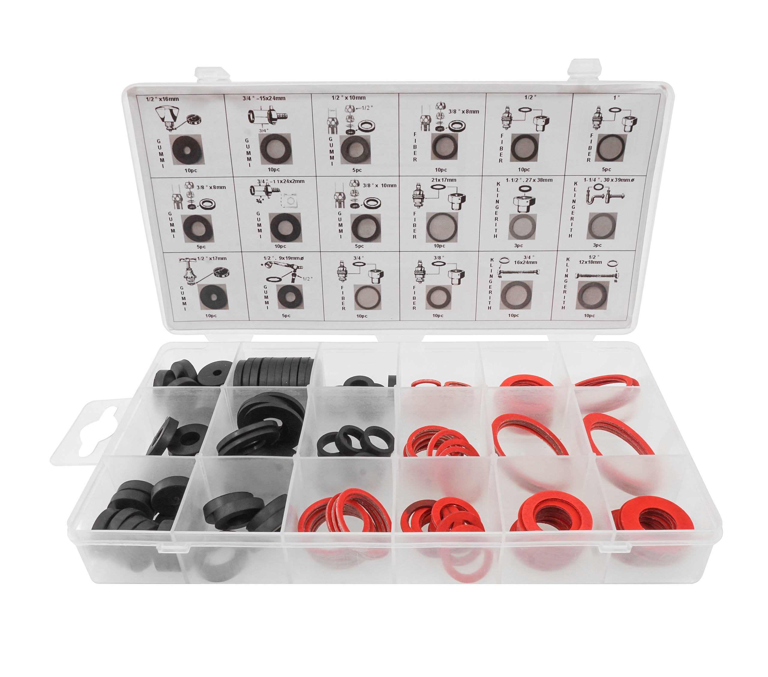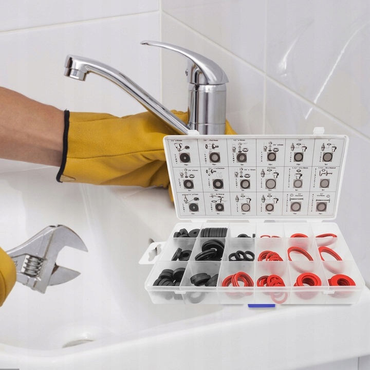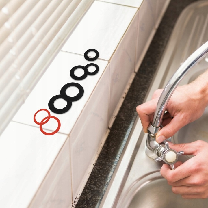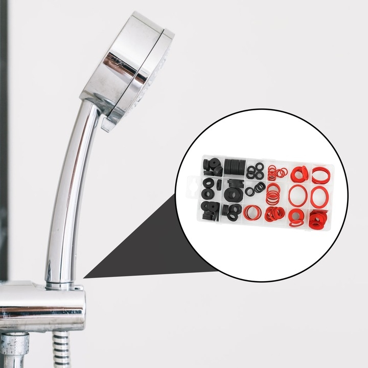 Набор гидравлических уплотнений из резины и вулканизированной текстуры для систем с холодной и горячей водой. Черные предназначены для систем с холодной водой, красные – для систем с горячей водой.