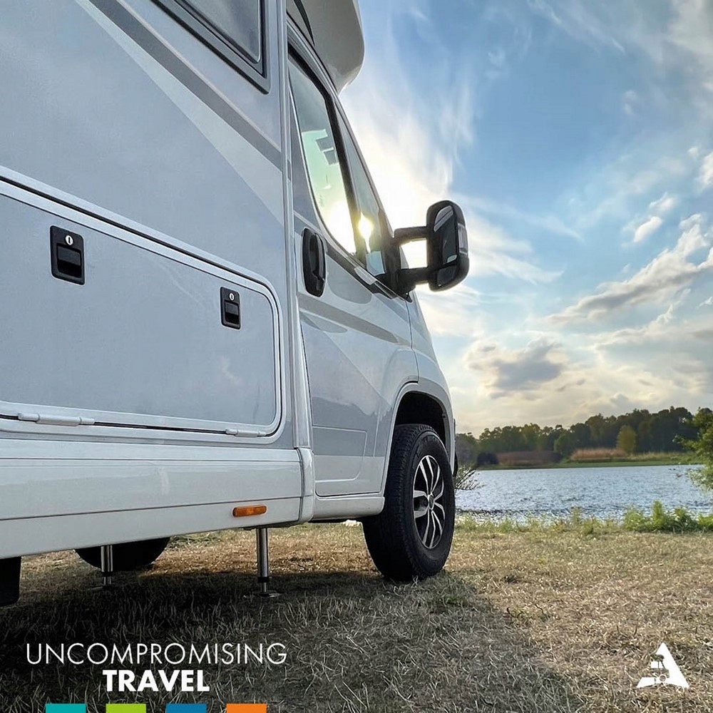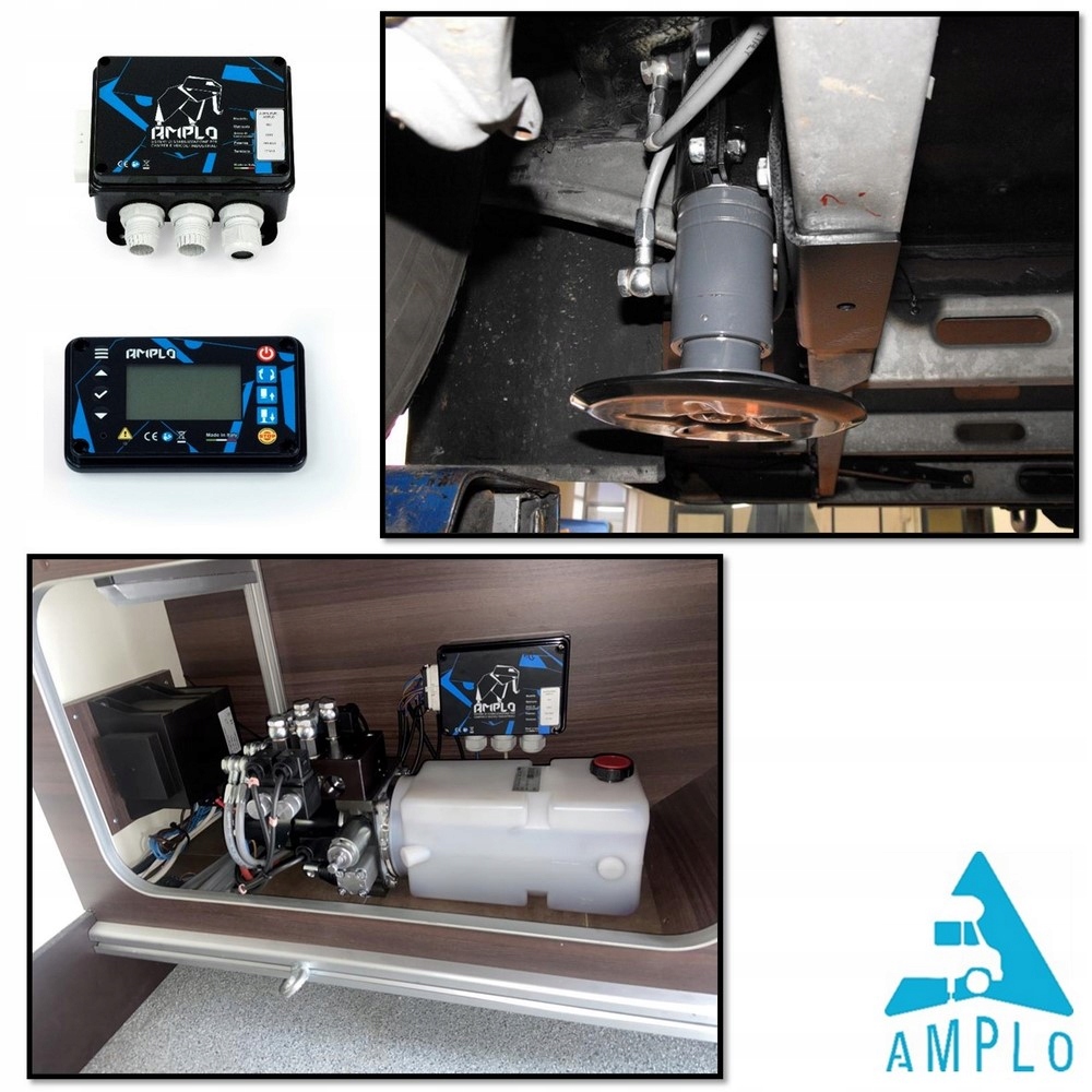 Система автоматически управляет опорами из гидравлического заполнителя, обеспечивая выравнивание транспортного средства менее чем за 100 секунд. Это всегда работает в парах для дополнительной безопасности. Предназначен для транспортных средств до 5 тонн - идеально подходит для туристов и фургонов на основе шасси Fiat Ducato, Mercedes Sprinter и других.