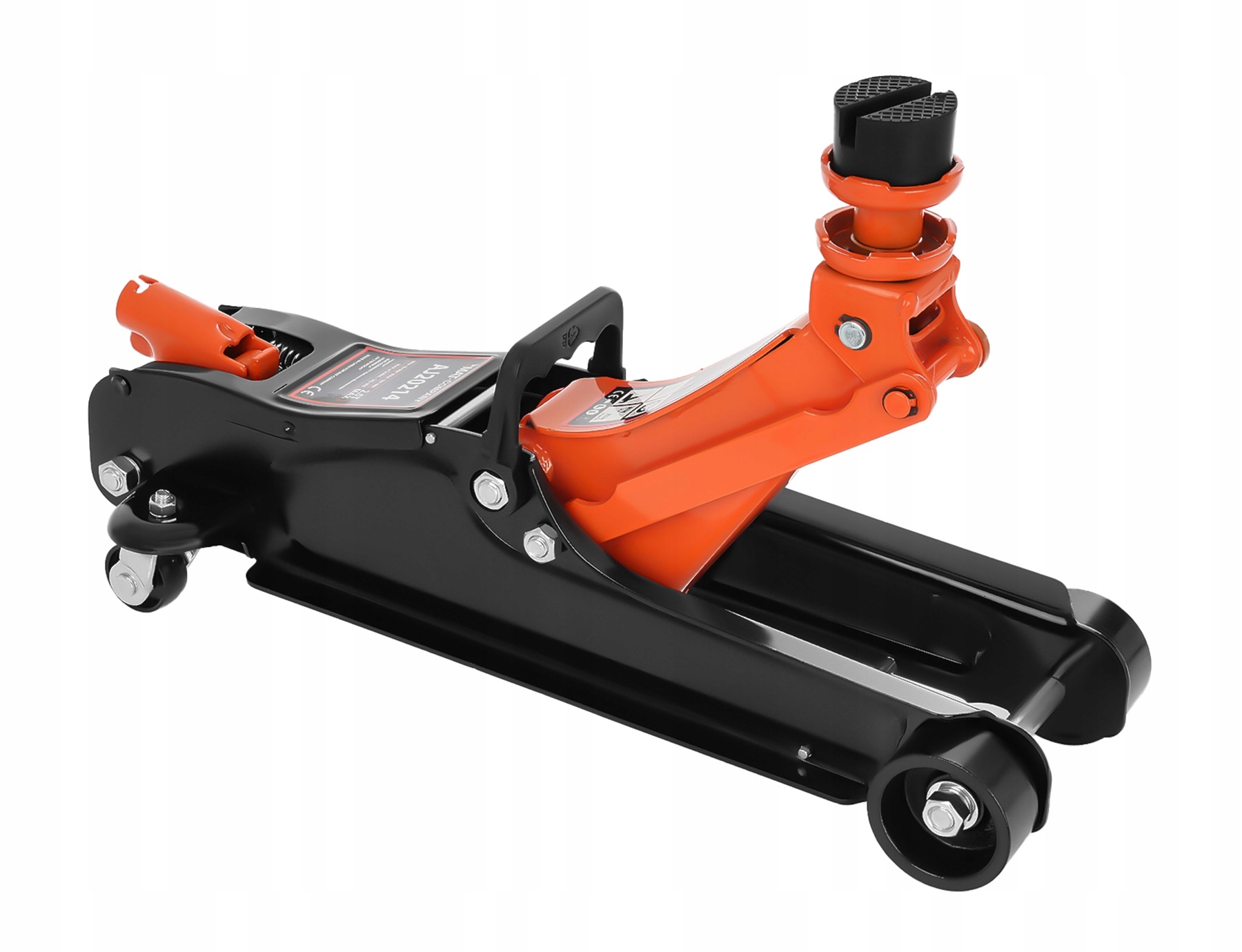 Высококачественный низкопрофильный гидравлический подъемник 2,5 т типа ŻABA. Изготовлен из толстого стального листа, обеспечивающего достаточную жесткость конструкции. Удобен в использовании, оснащен 4 колесами, которые позволяют быстро разместить подъемник в нужном месте. Работает в диапазоне от 80 до 360 мм. Низкопрофильный домкрат можно использовать при работе с автомобилями с заниженной подвеской.