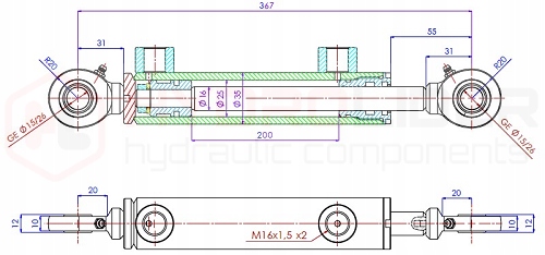 Гидравлический цилиндровый цилиндр 2-Str 25/16/200 Skok 200 мм L: 367 Гидролид