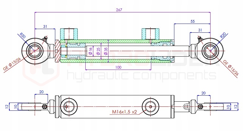- Диаметр поршня: 16 Диаметр поршня: 16 мм