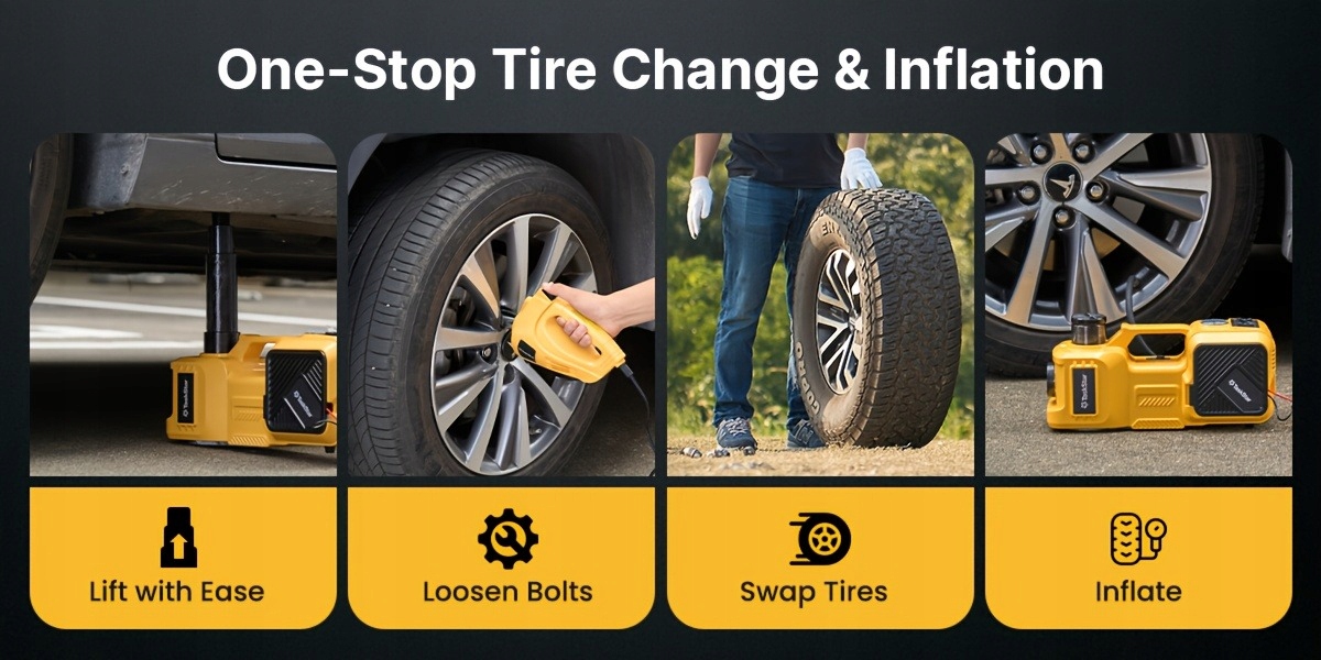 - Объединяет домкрат из высокопрочной легированной стали (для тяжелого подъема) и быстрый насос производительностью 35 л/мин (с отображением давления в реальном времени + 3 накачивающими форсунками) — идеально подходит как для подъема транспортных средств, так и для накачивания шин/оборудования.