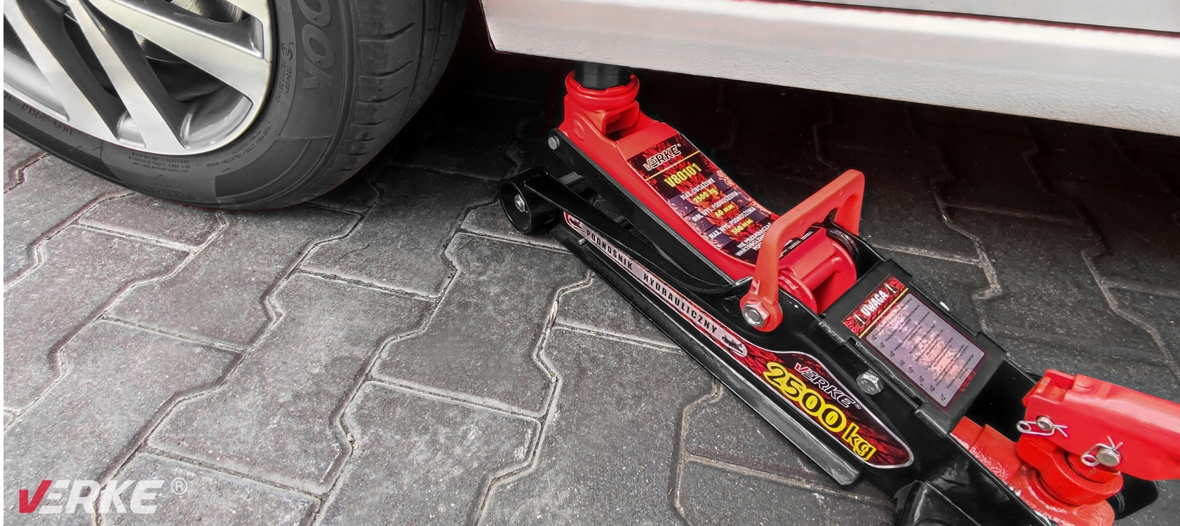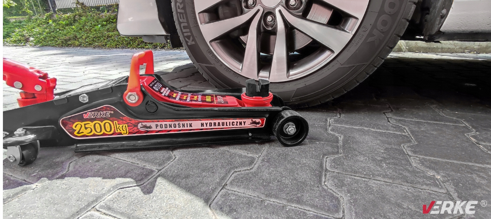 ▶ Автоподъемник VERKE®. Его конструкция основана на принципе подъема руки с гидравлическим приводом, работающим по горизонтальной оси. Характерной особенностью домкрата является его небольшая начальная высота, что позволяет задвигать домкрат под любой автомобиль, что особенно полезно для невысоких спортивных автомобилей. Незаменим в автосервисах, шиномонтажах и станциях технического обслуживания автомобилей.
