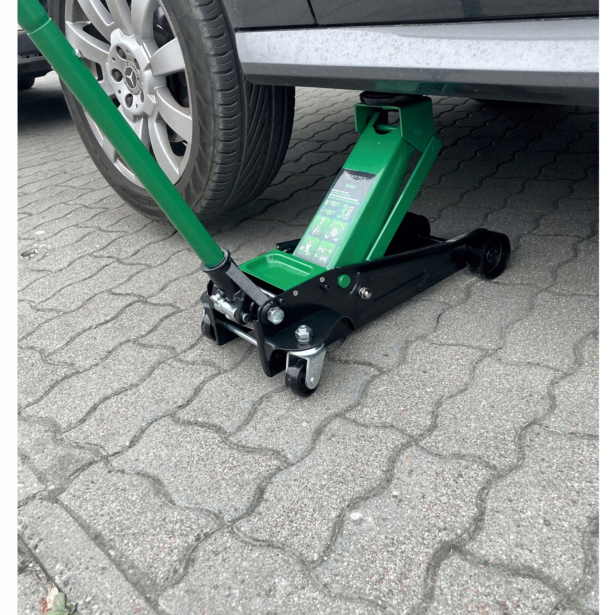 Благодаря правильно спроектированным колесам этот домкрат можно легко разместить в любой точке автомобиля. Их конструкция значительно облегчает маневрирование этим инструментом. Их большой диаметр позволяет легко управлять подъемником даже на неровных поверхностях.