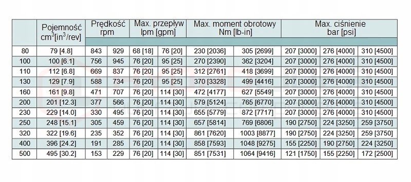 lympatimination: 100cm3/rev; Роллер: 32 мм; Оборота: 756 obr/min