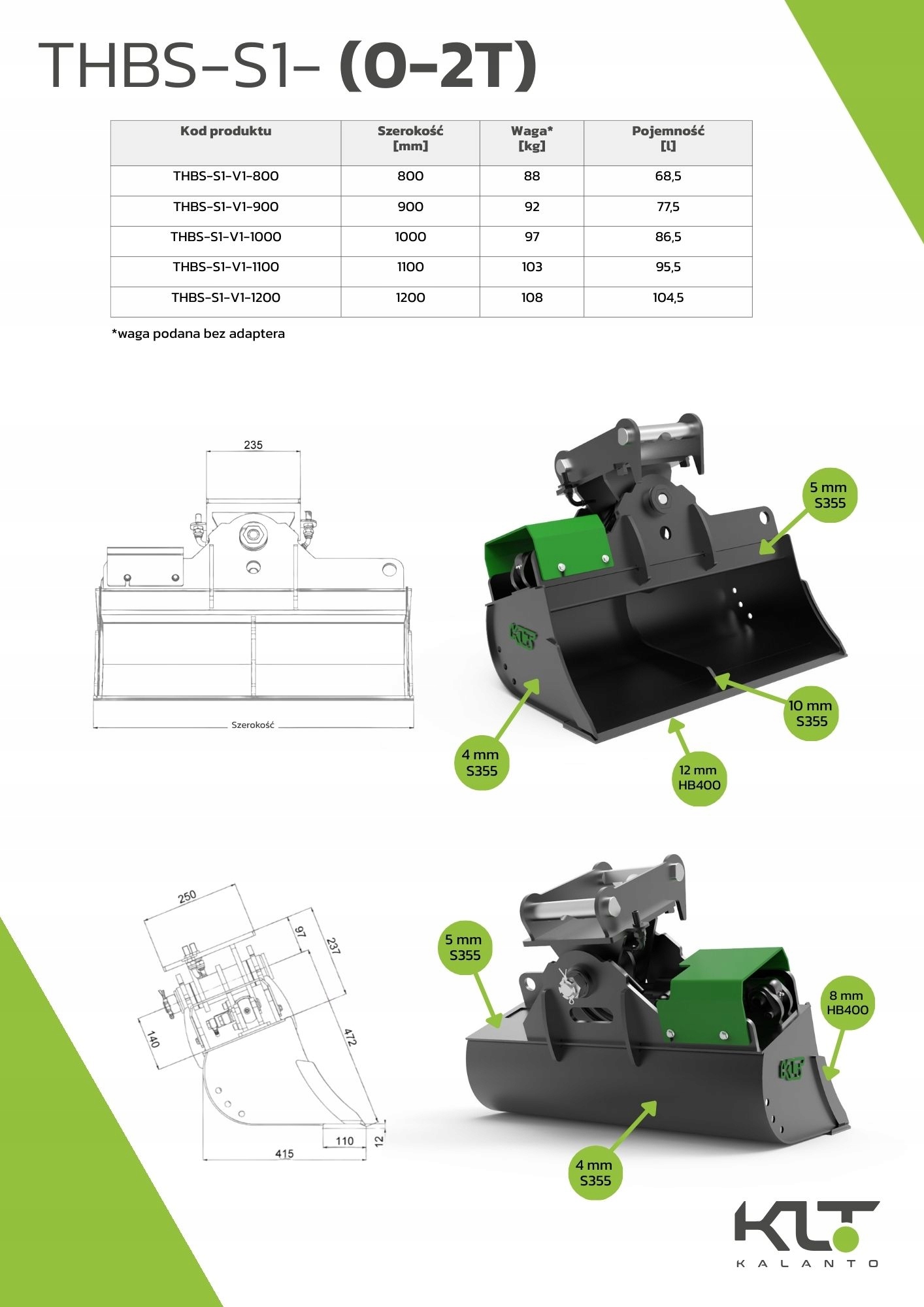 Ковш гидравлический наклонный из серии THBS-S1-V1 — инструмент для точного благоустройства, профилирования откосов и очистки канав с помощью мини-экскаваторов массой до 2 тонн. Благодаря использованию гидроцилиндра ковш позволяет регулировать рабочий угол, что значительно повышает универсальность и комфорт работы – особенно в труднодоступных местах и на неровной местности.