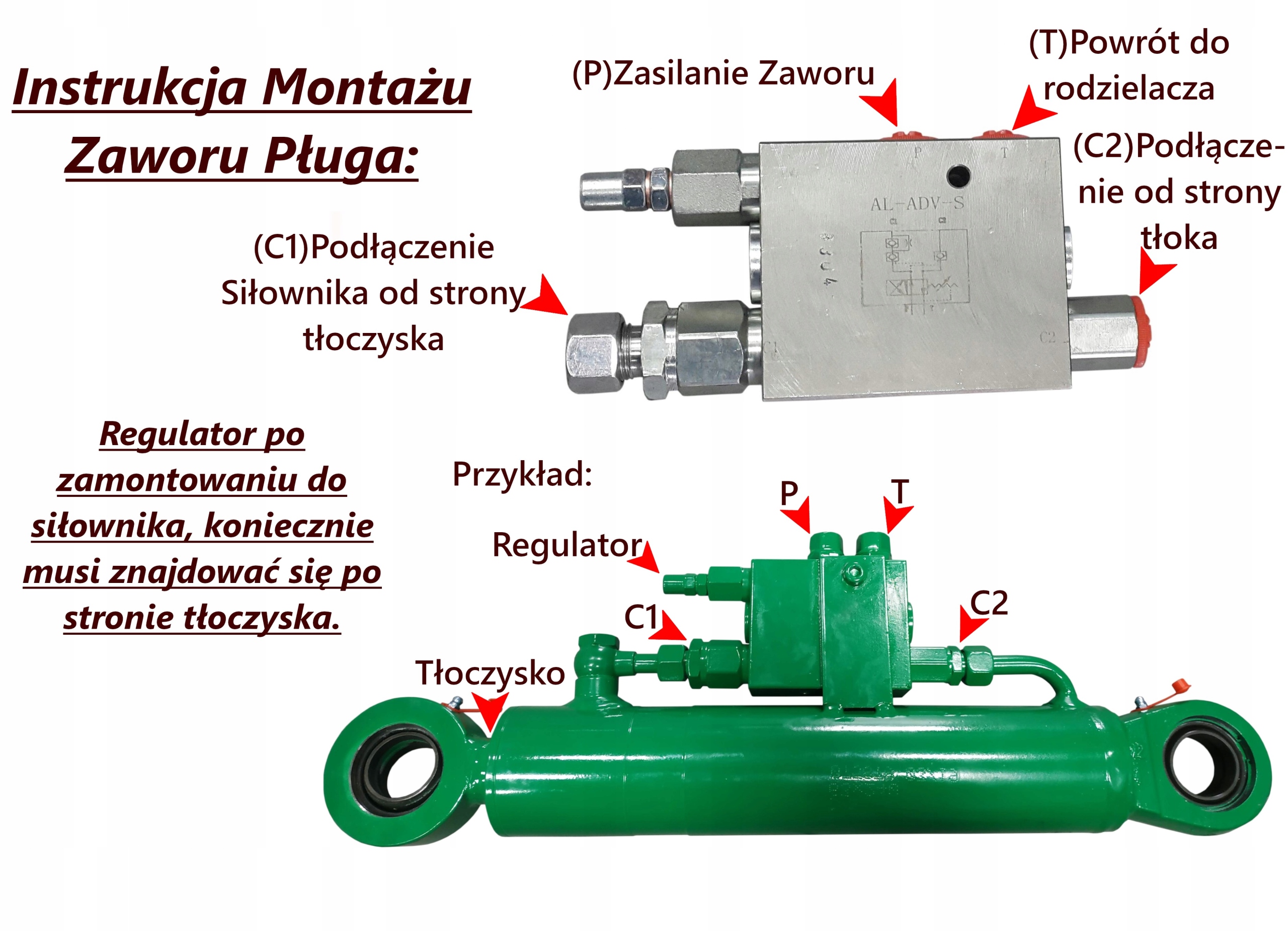 Гидравлический клапан предназначен для приводов с диаметром цилиндра 60-80 мм (наружный диаметр 70-100 мм), в 2-, 3- и 4-корпусных ротационных плугах.