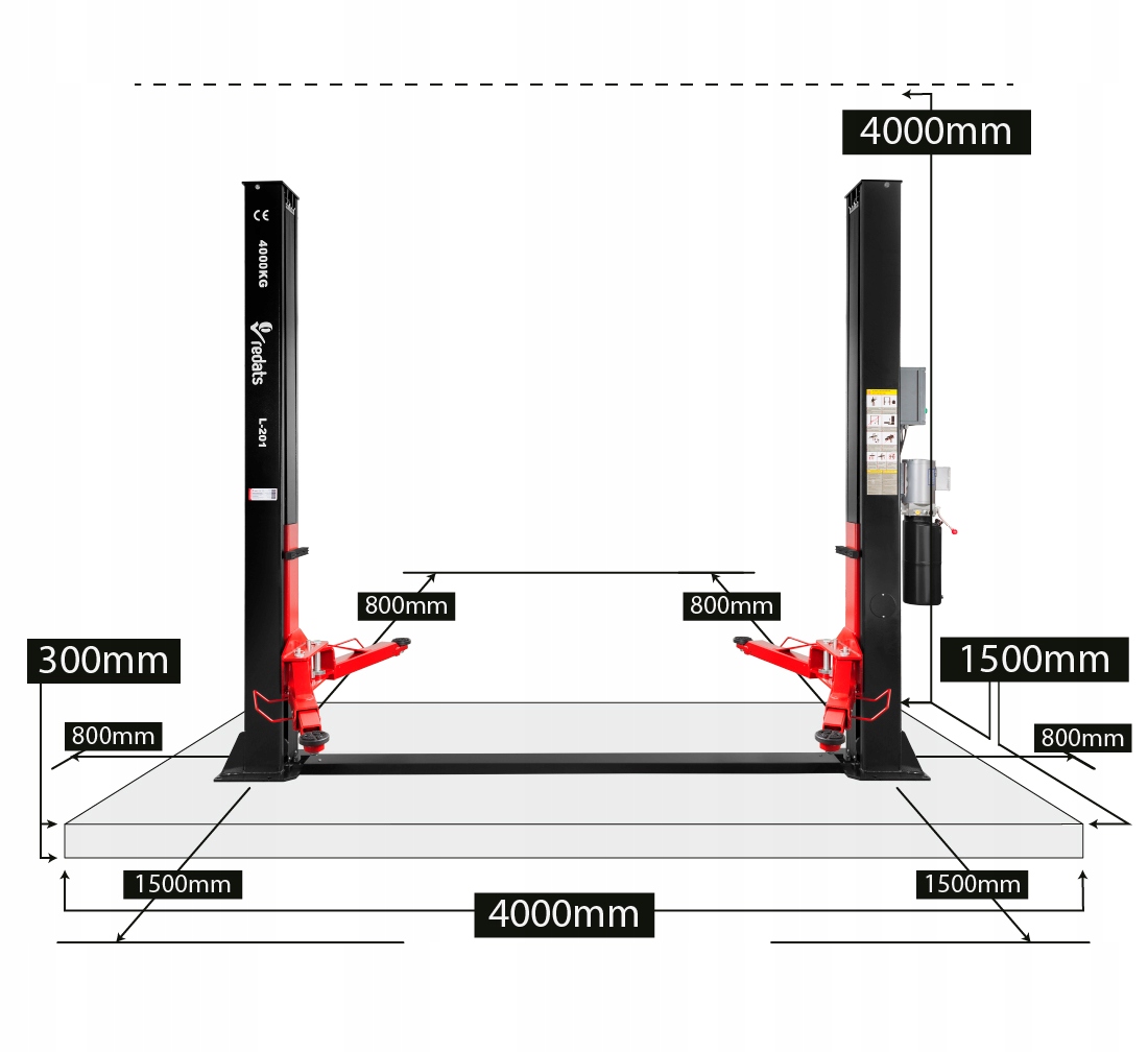 ДВУХКОЛОННЫЙ АВТОПОДЪЕМНИК 4Т REDATS L-201 ПОЛУАВТОМАТИЧЕСКИЙ + БЕЗ МАСЛА