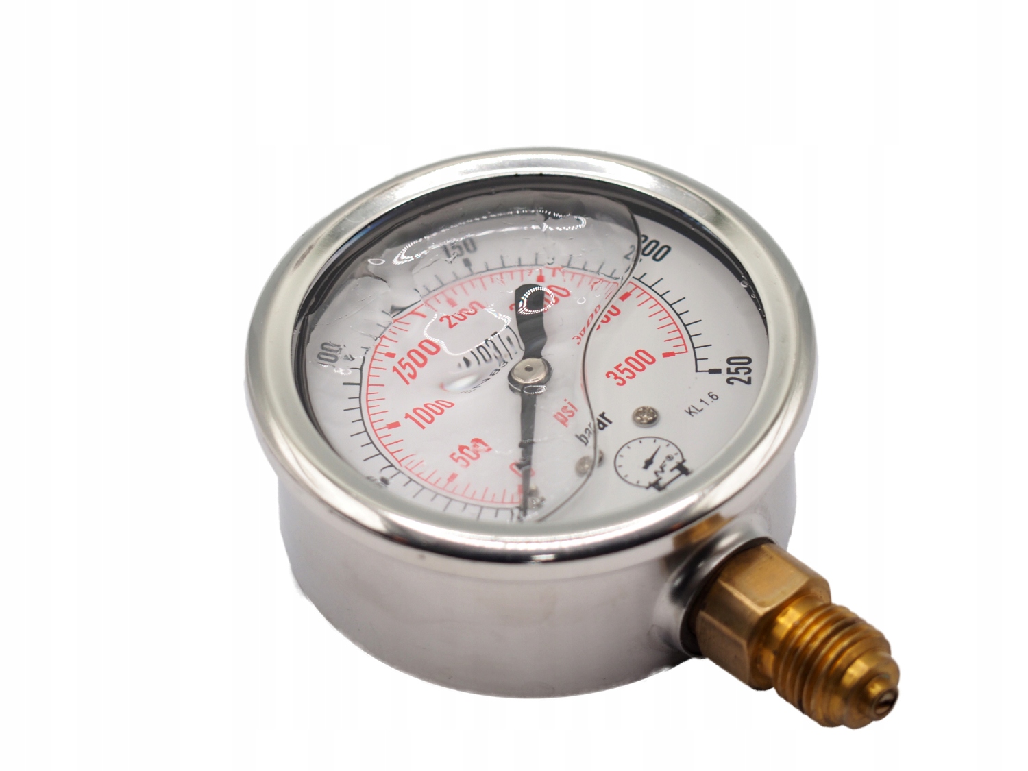 Гидравлические манометры 0–100 бар с нижним соединением 1/4 дюйма, диаметром диска 63 мм, заполнены глицерином.