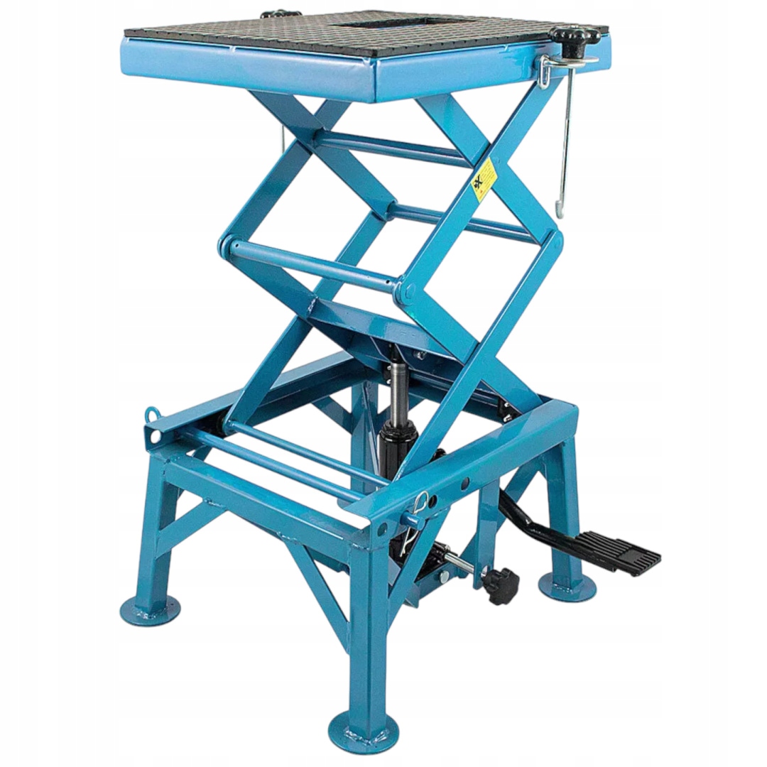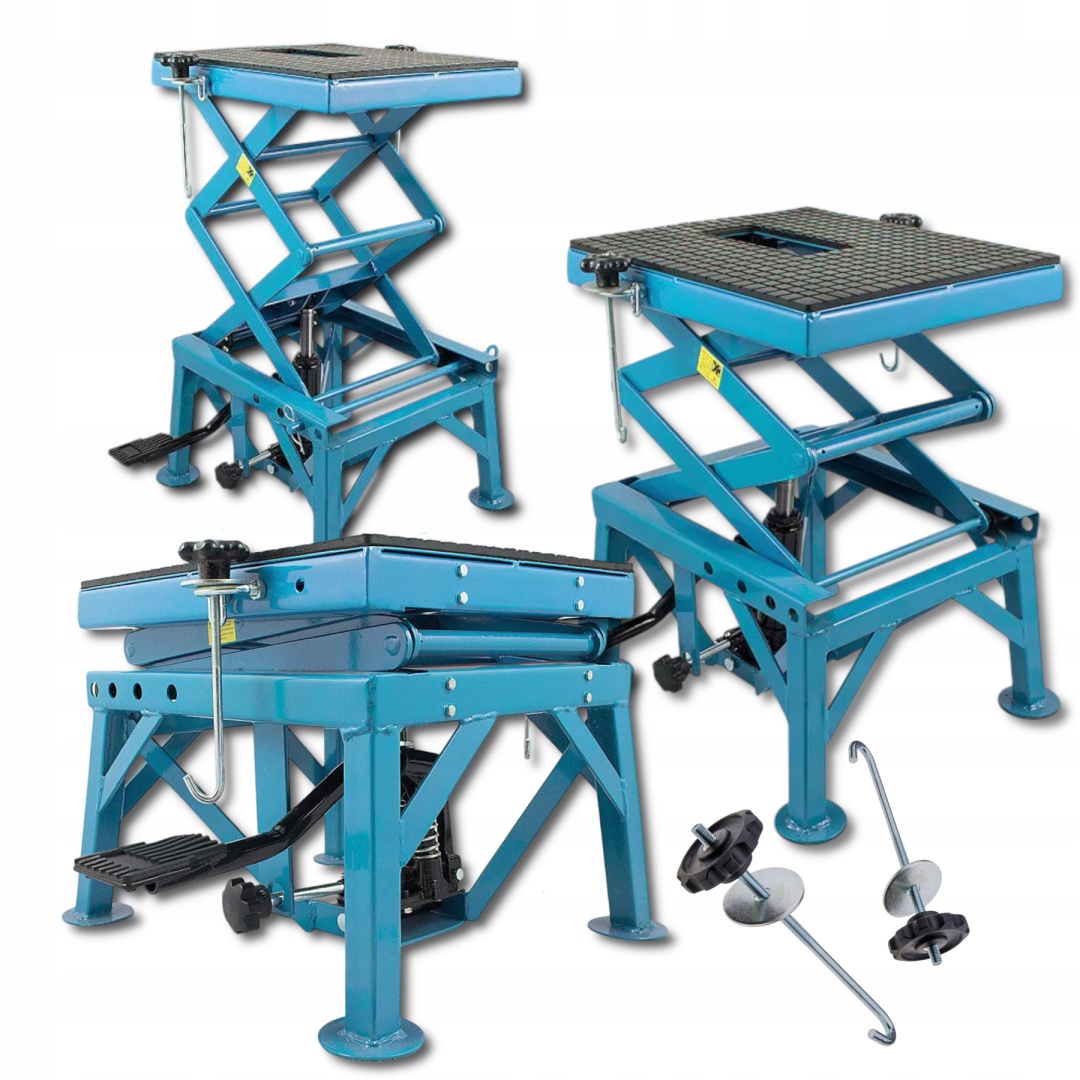Гидравлический ножничный подъемник грузоподъемностью 135 кг с 3-ступенчатой регулировкой высоты (60 см, 75 см, 87 см). Резиновая платформа, устойчивая конструкция и компактные размеры делают ее идеальной для обслуживания и ремонта мотоциклов.