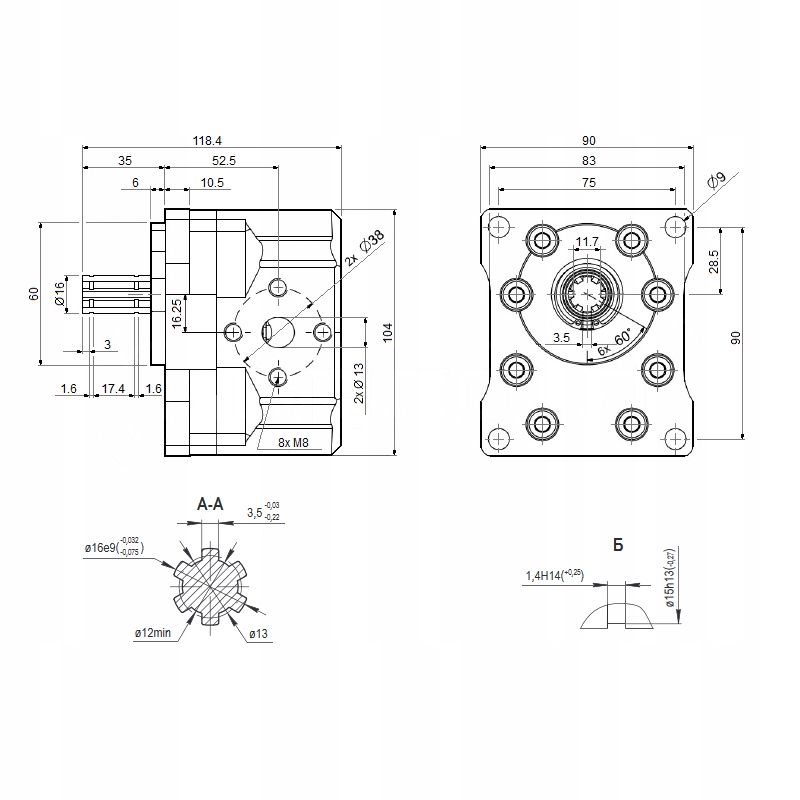 Гидравлический зубчатый насос NSZ16. Серия польских насосов NSZ Производство гидроторных тучу. Емкость 24 л/мин (при 1500 млн/мин), давление на номинал 16 МПа, правый оборот. Прямой ролик 6 резаков.