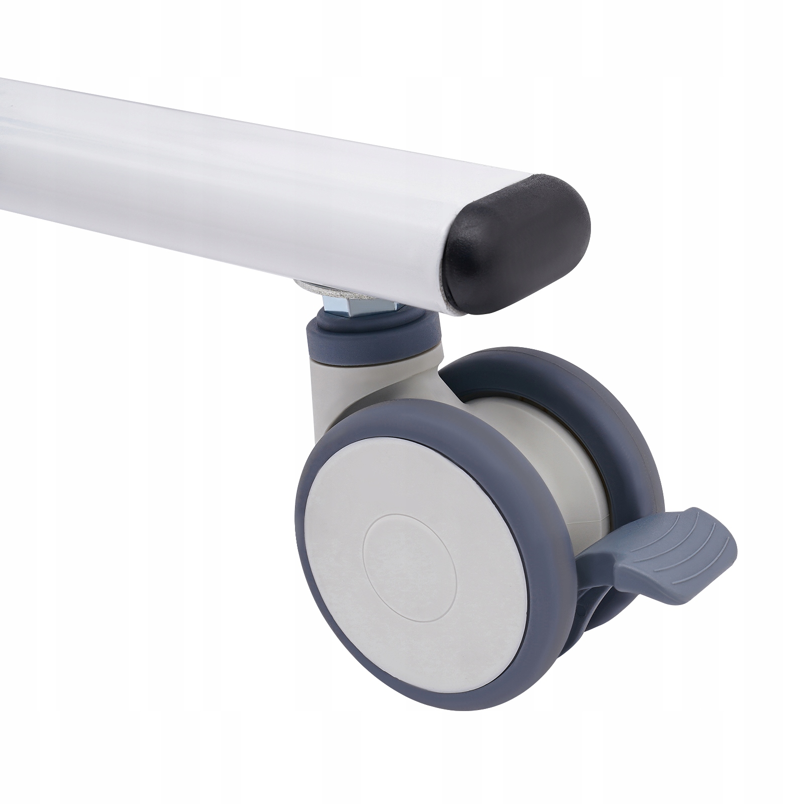 Гибкость перемещения и фиксации: Четыре бесшумных универсальных ролика с тормозами позволяют легко перемещать и надежно фиксировать это изделие в правильном положении, что делает его идеальным для использования в помещении или на открытом воздухе.