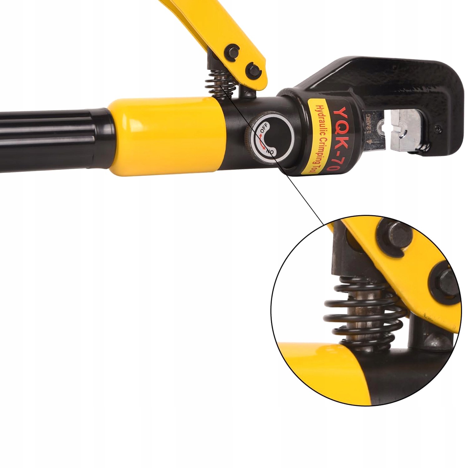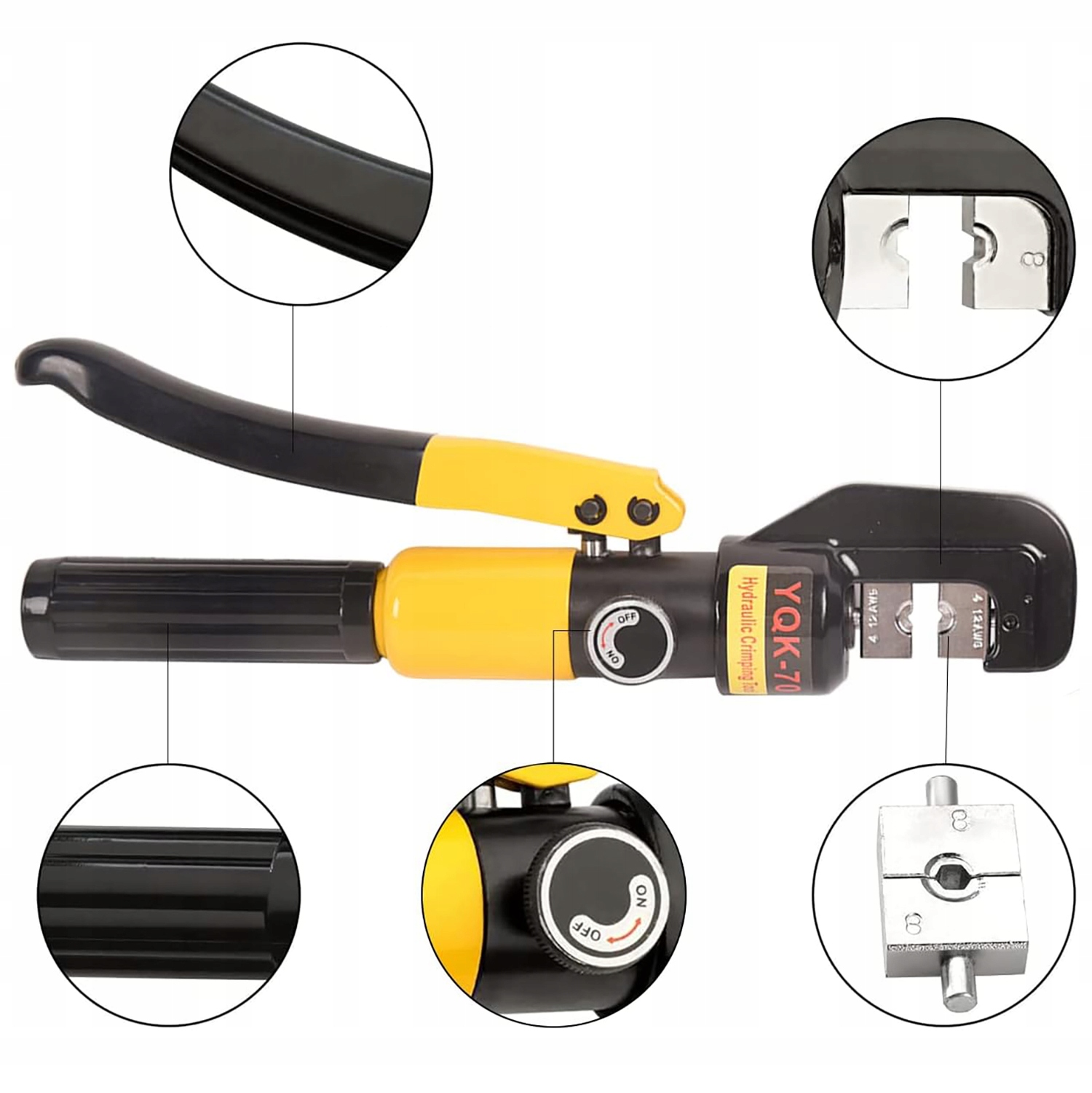 Ручка с виниловым покрытием очень удобна и простой в использовании и не проскальзывает. Инструмент гидравлического затягивания имеет дружелюбную пользовательную структуру, эргономичные ручки и интуитивно понятные элементы управления, что делает их простыми в использовании. Идеально подходит как для профессионалов, так и для DIY. Идеально подходит для батареи, терминала, сварки, питания и электрических кабелей и т. Д. Его голова может свободно вращаться на 360 °, чтобы получить преимущества при работе в узком пространстве. Набор включает в себя прочную желтую пластиковую коробку, которая облегчает ношение и хранение