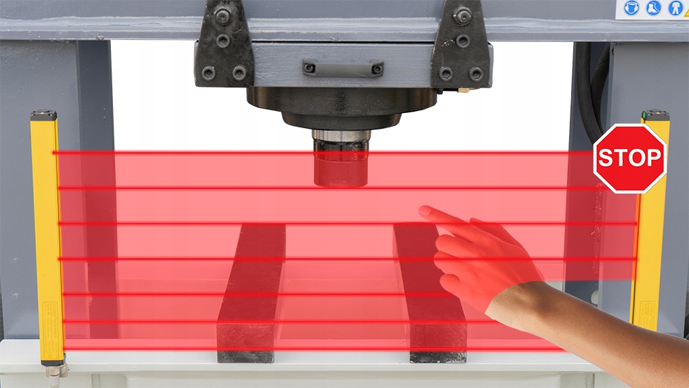 Машина также оснащена световой завесой безопасности типа 4, которая защищает оператора и сводит к минимуму риск несчастных случаев. Эти системы безопасности являются ключевым элементом обеспечения спокойствия и безопасности во время интенсивной работы. Шторы безопасности — это устройства безопасности, создающие световой барьер вокруг источника опасности. Эти устройства соответствуют самым высоким стандартам безопасности