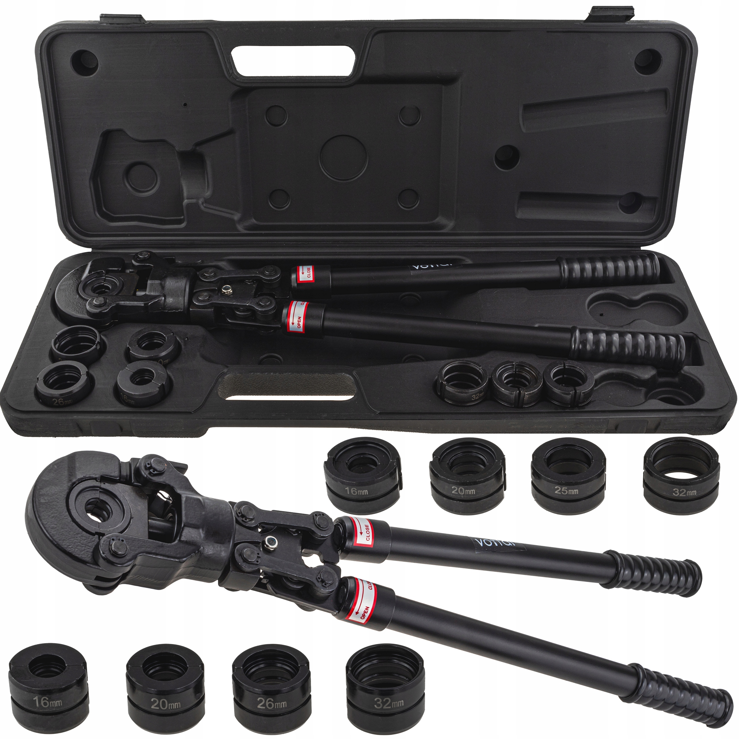 Сменные губки - плашки ТН, входящие в комплект, позволяют работать с трубами диаметром 16, 20, 26,32 мм. Пресс изготовлен из качественного, устойчивого к повреждениям материала. металл. Покрыты маслом, защищены от коррозии. Это обеспечивает очень точное и быстрое соединение труб. В комплект входят 4 обжимные матрицы V-образного типа размерами: 16, 20, 26, 32 мм. Пресс имеет регулировку давления. Ручка пресса PEX прорезинена, что обеспечивает еще лучший захват.Пластмассовый короб защищает пресс и плашки от повреждений. Компактные размеры облегчают работу. Система быстрой смены штампов позволяет легко заменять штампы в зависимости от ваших потребностей. Сменные губки - плашки ТН, входящие в комплект, позволяют работать с трубами диаметром 16, 20, 26,32 мм.