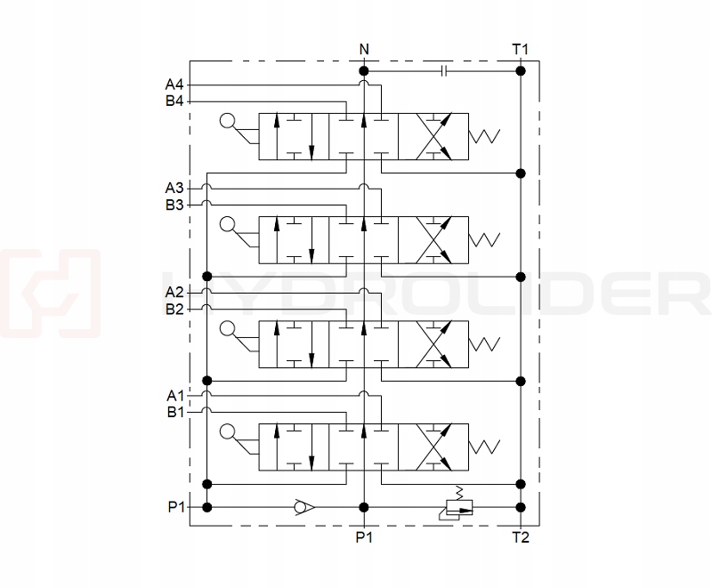 Каждая секция приспособлена для управления односторонним или двухсторонним цилиндром. Он имеет выход давления N, необходимый для последовательного соединения или для установки распределителя в качестве другого в существующей системе. Распределитель предназначен для различных типов машин, таких как: сельскохозяйственные машины, тракторы, опрыскиватели, туристические машины, циклопы, погрузчики HDS, строительные машины, погрузчики, экскаваторы, подметальные машины, промышленные машины и другие устройства с гидравлическим управлением.